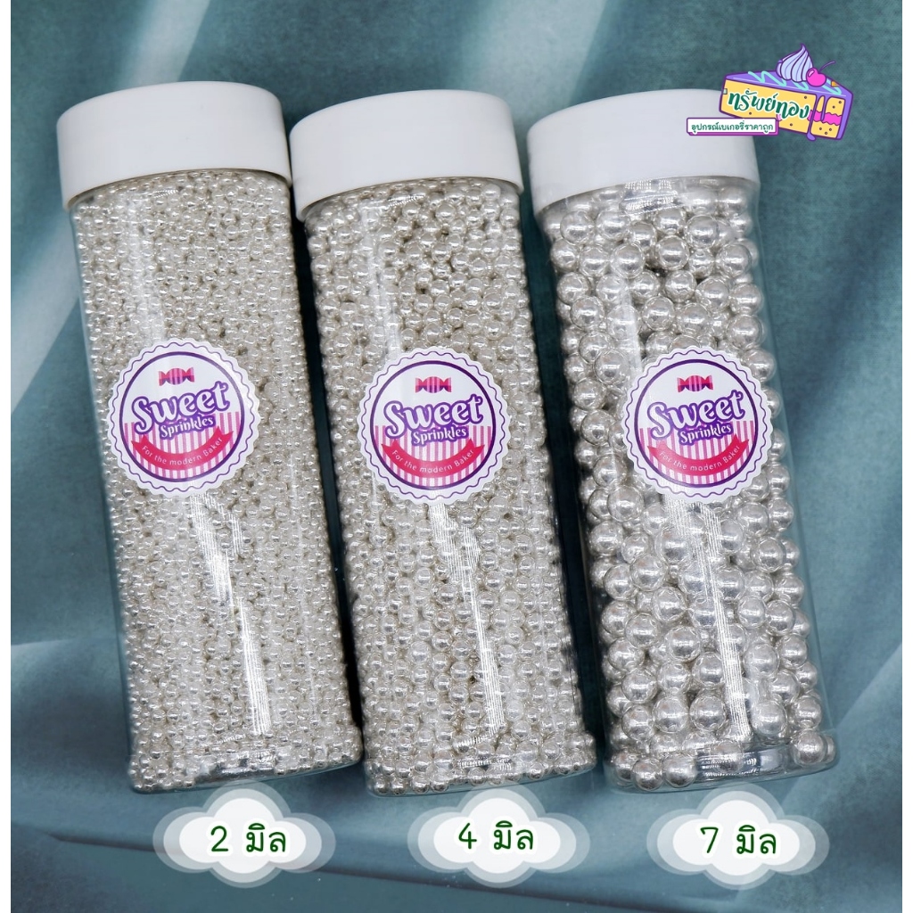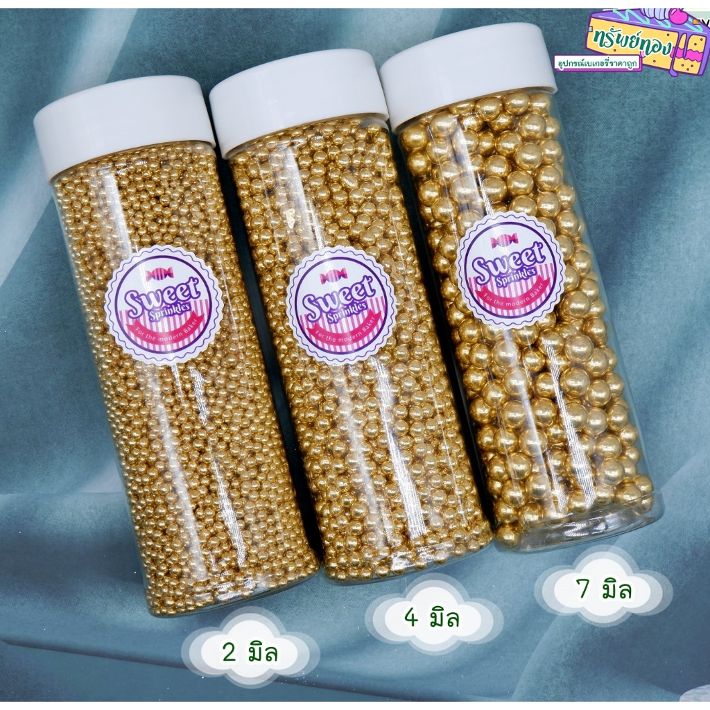 💖พร้อมส่งด่วน💖 เม็ดมุก น้ำตาลตกแต่งเค้กสีทองและสีเงิน ขนาด2มิล 4มิล และ7มิล