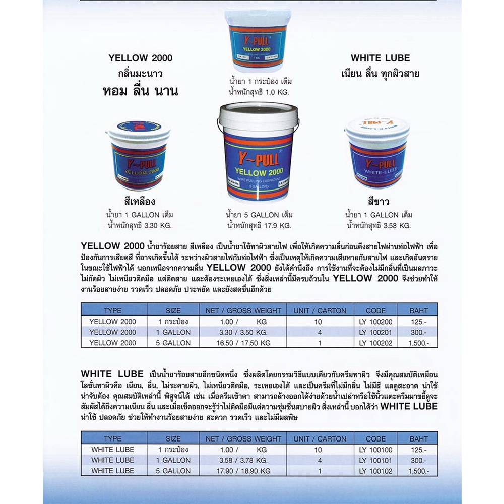 Y-PULL น้ำยาร้อยสายไฟ ขนาด 1 Kg วายลูบ WHITE LUBE สีขาว 1/4 GALLON น้ำยาร้อยสาย