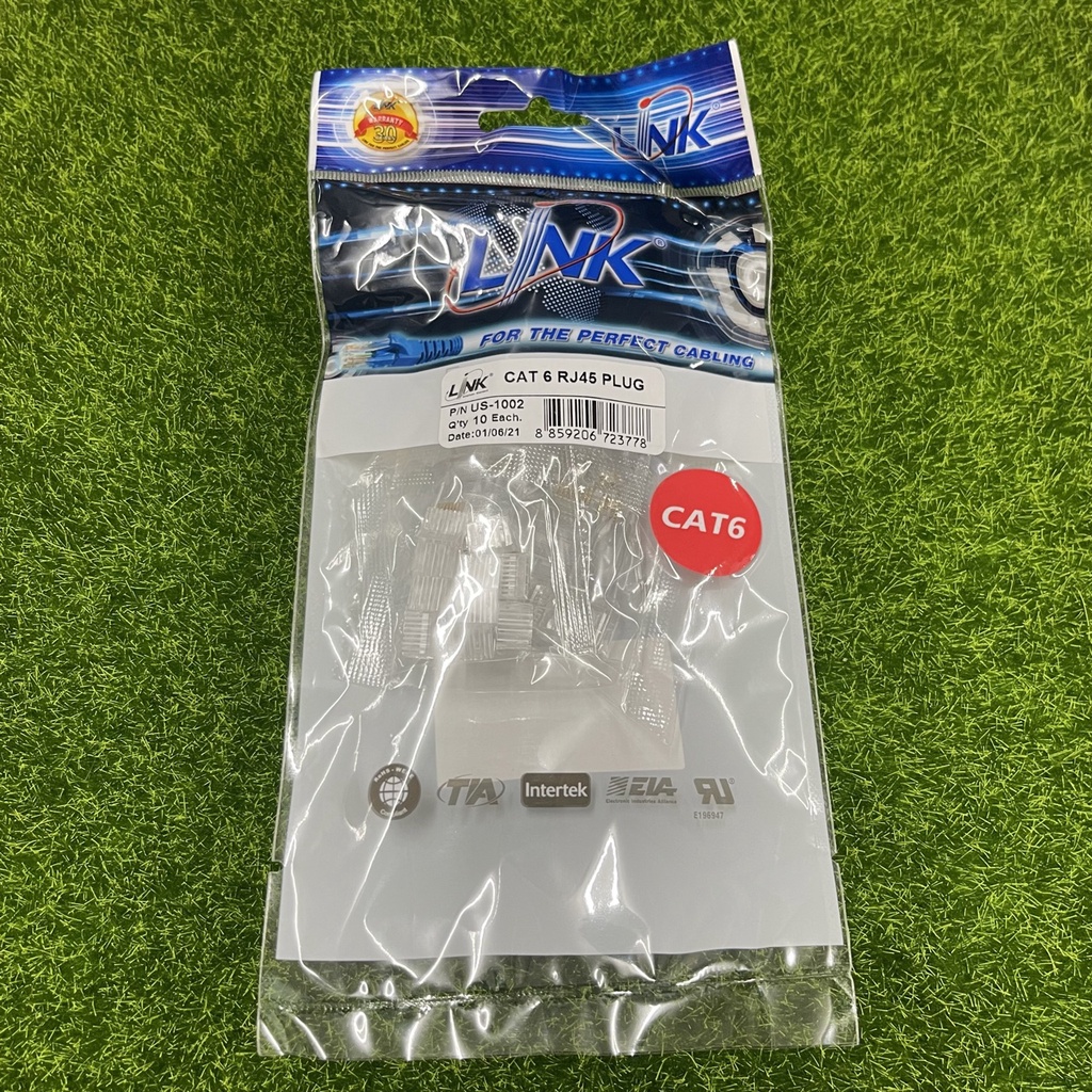 LINK US-1002 แจ็คตัวผู้ RJ45 CAT 6 (10ตัว/Pack) สำหรับเข้าหัวปลายสาย ตัวผู้ สีใส LAN Plug