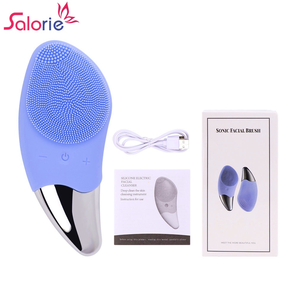 Salorie แปรงทําความสะอาดผิวหน้าไฟฟ้า อัลตราโซนิก ซิลิโคน ชาร์จ USB