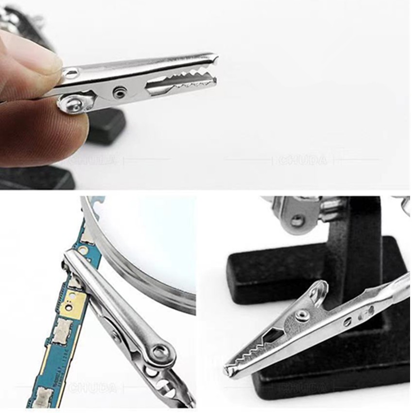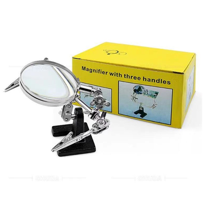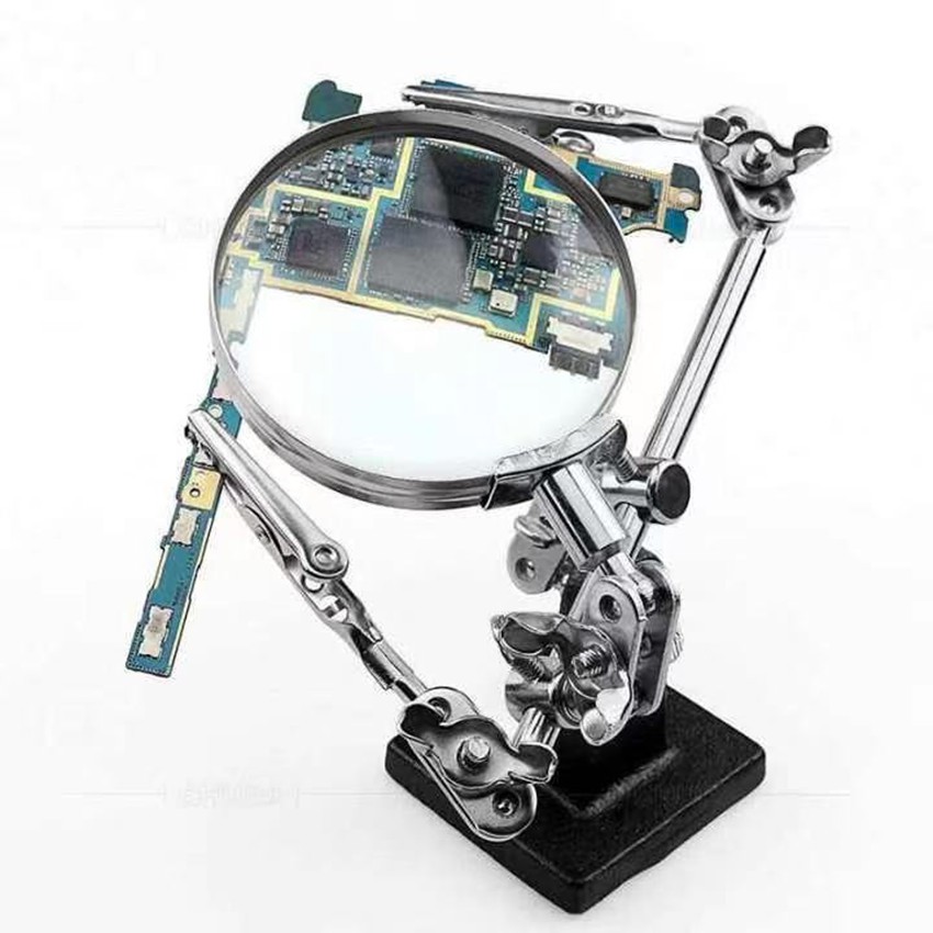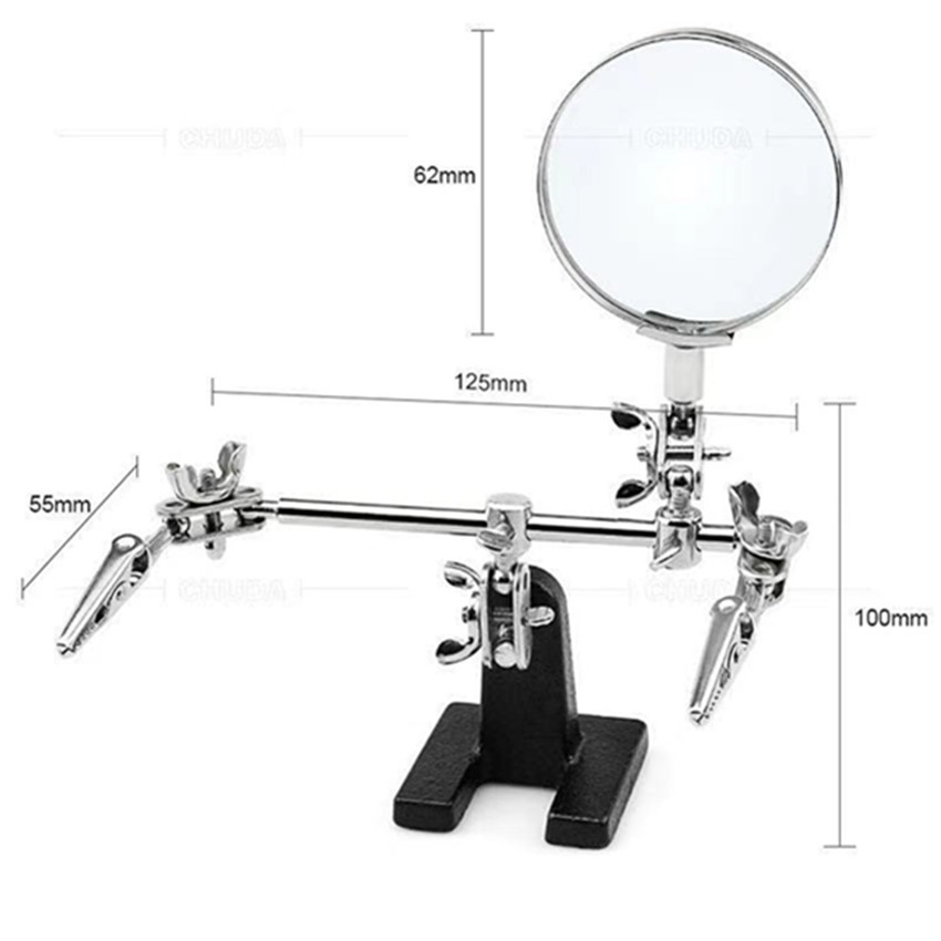 แท่นจับยึดชิ้นงาน 2 แขนพร้อมแว่นขยาย และที่วางหัวแร้งบัดกรี