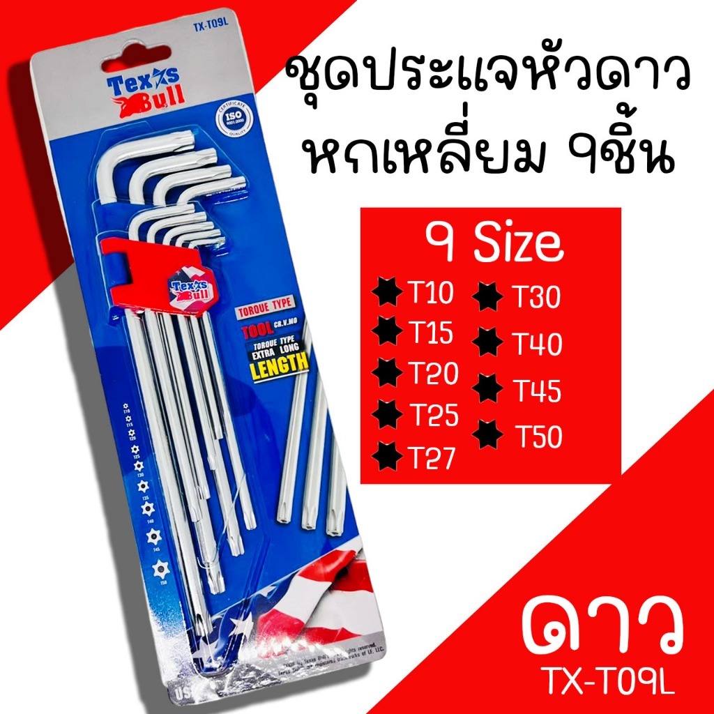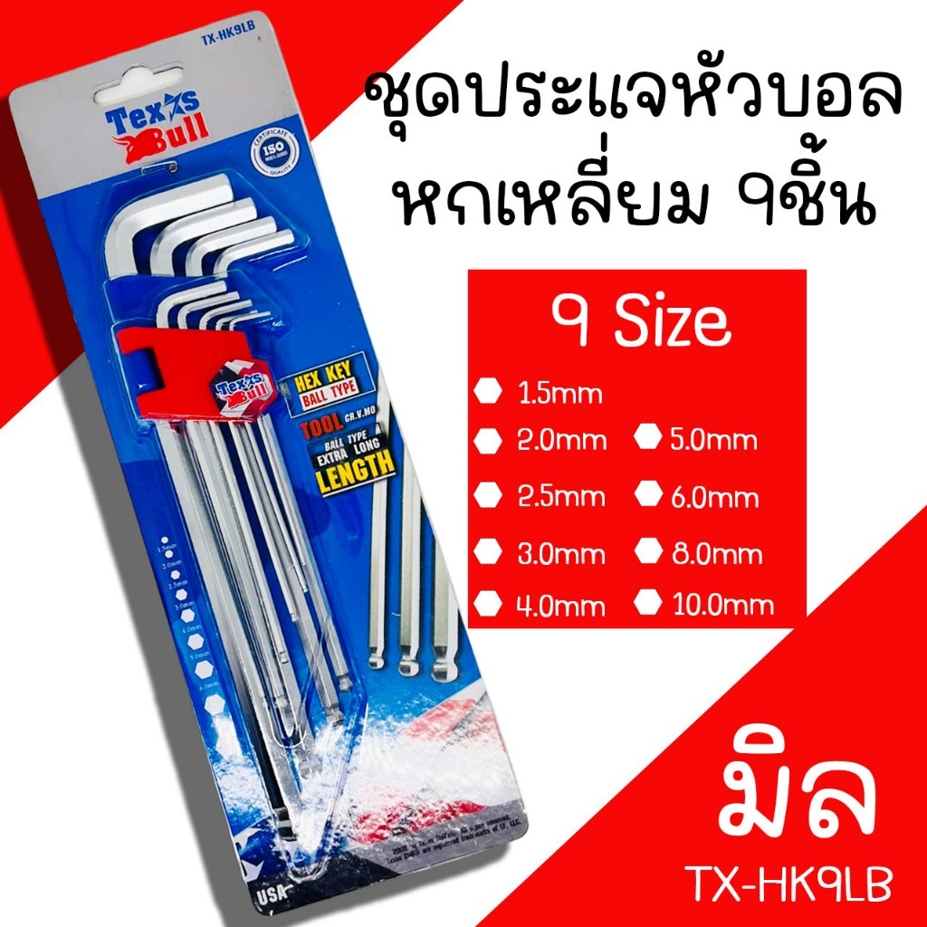 ประแจหกเหลี่ยม 9ชิ้น Texas Bull (ชุดมิล, ชุดหุน, ชุดดาว) ประแจหกเหลี่ยม ชุดประแจหกเหลี่ยม ประแจ