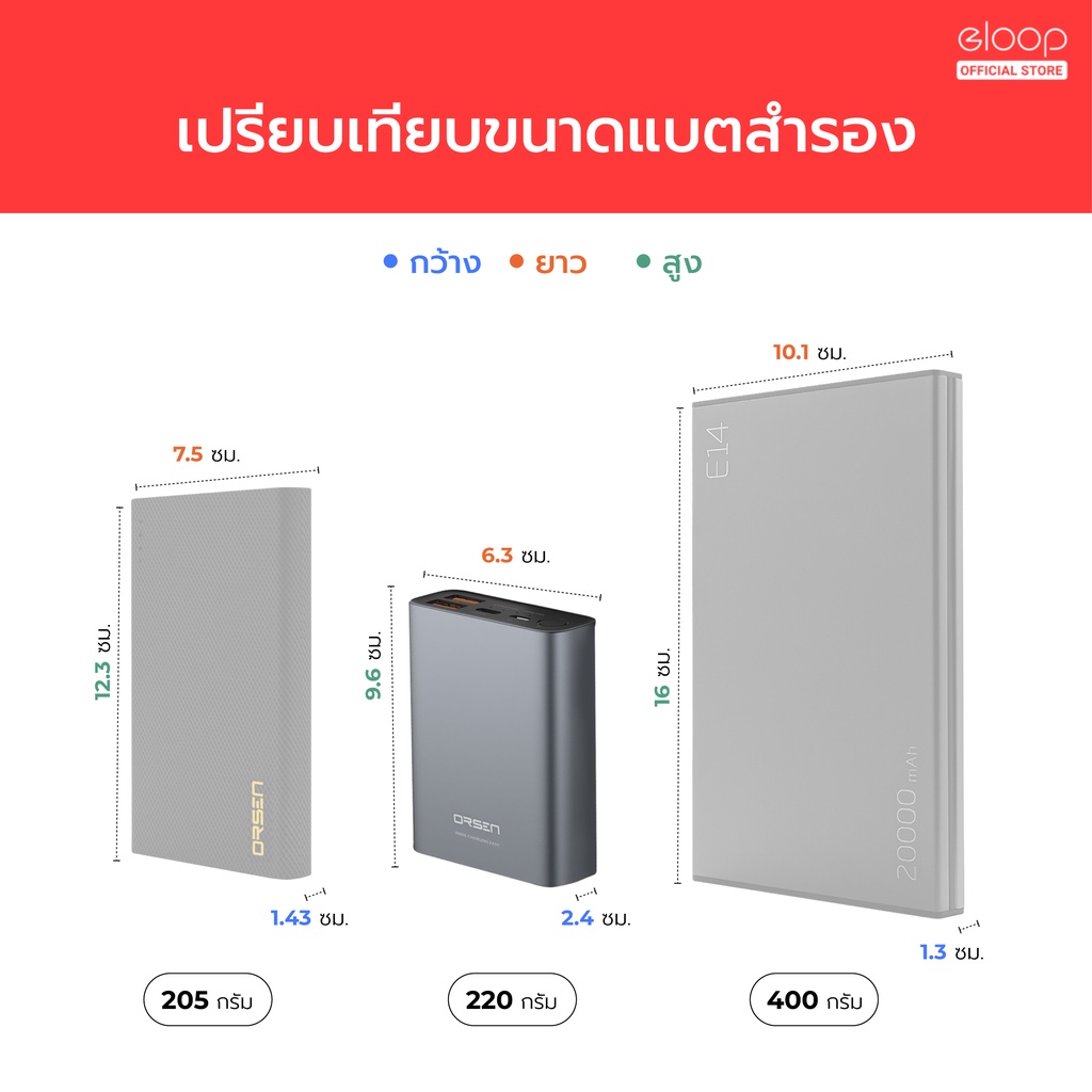 [599บ.โค้ดคุ้ม] Orsen by Eloop E29 30000mAh / E36 12000mAh แบตสำรอง 20W ชาร์จเร็ว PowerBank Fast Charge
