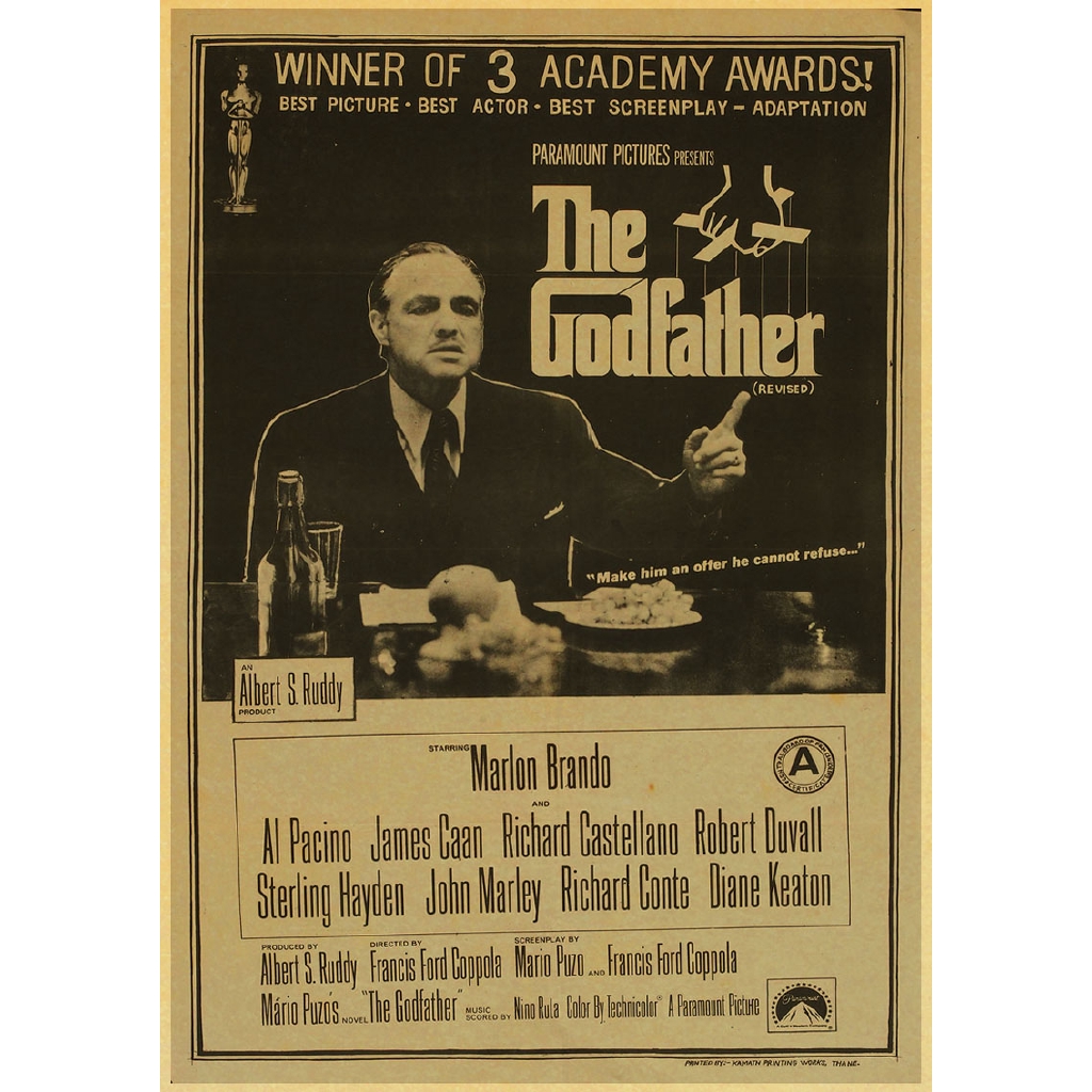 โปสเตอร์ พิมพ์ลาย The godfather สไตล์วินเทจ คุณภาพสูง สําหรับตกแต่งผนัง