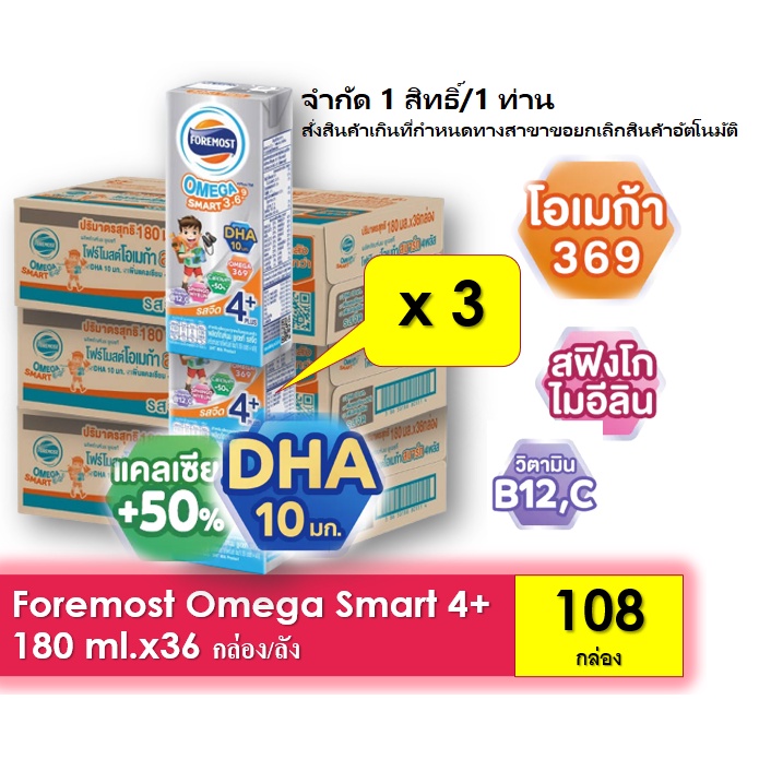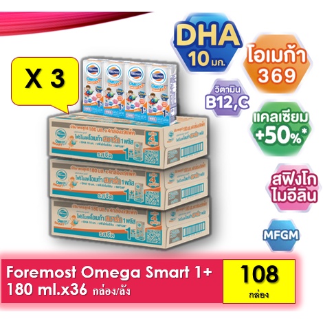 [ขายยกลัง x 3 ลัง/108 กล่อง] โฟร์โมสต์ โอเมก้า 369 สมาร์ท 1,4 พลัส รสจืด 180มล (36กล่อง/ลัง)Exp.20/5/2026