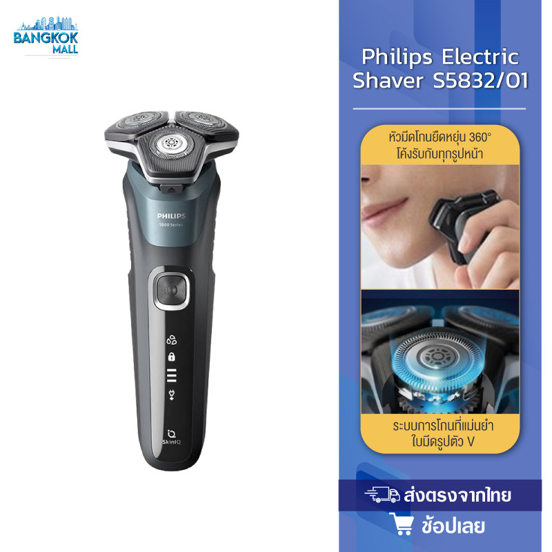 Philips Electric Shaver S5832/01เครื่องโกนหนวดไฟฟ้า เครื่องโกนหนวด เร็ว แรง สบายผิว เทคโนโลยี SkinIQ