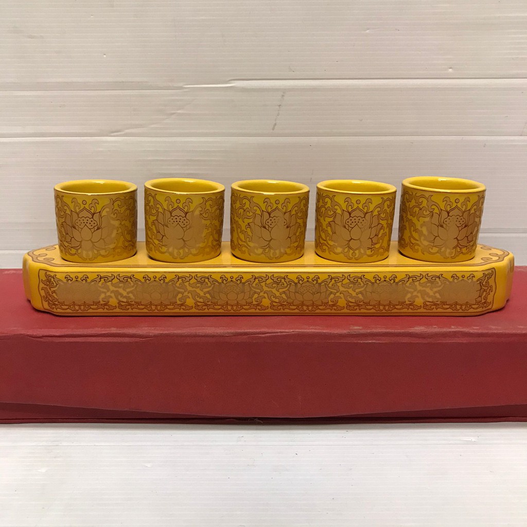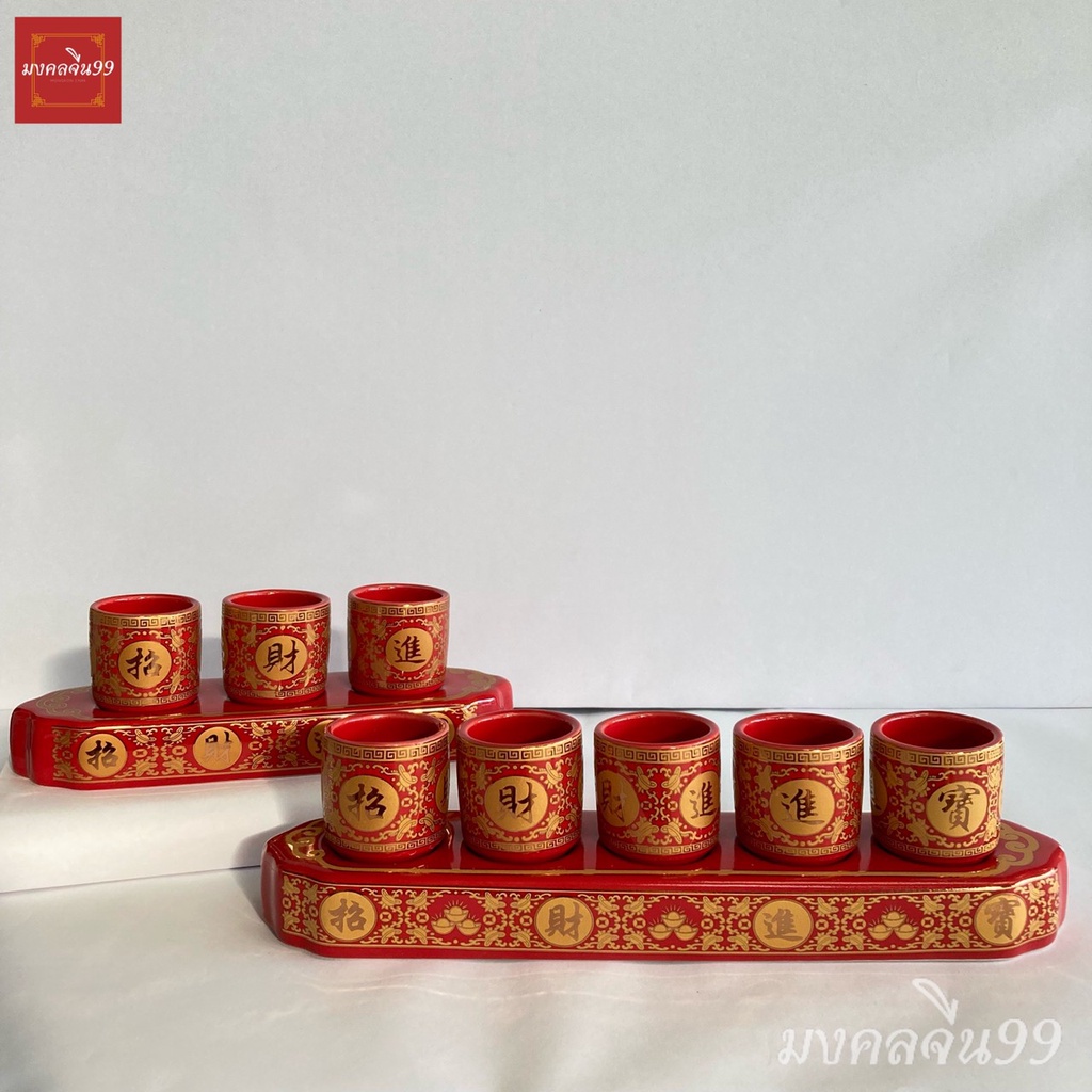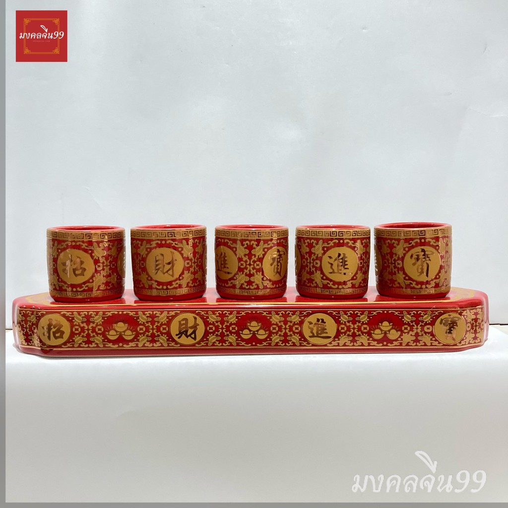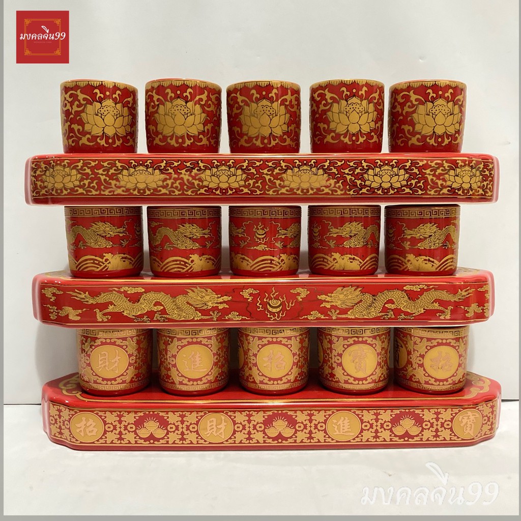 ถ้วยน้ำชา แก้วน้ำชา ไหว้พระ ไหว้เจ้า ลายมังกร ลายจีน ลายบัว (3/5ใบ) เซรามิก สีแดง