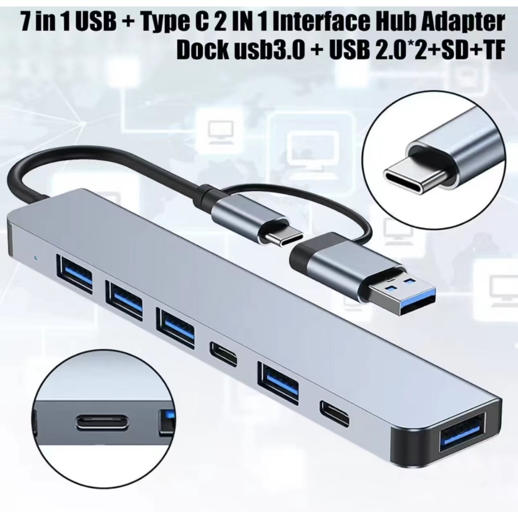 2in1 USB+TYPE C 7in1 ฮับ USB HUB 7 in 1 Type-C การ์ดความจำพอร์ตสำหรับอุปกรณ์คอมพิวเตอร์