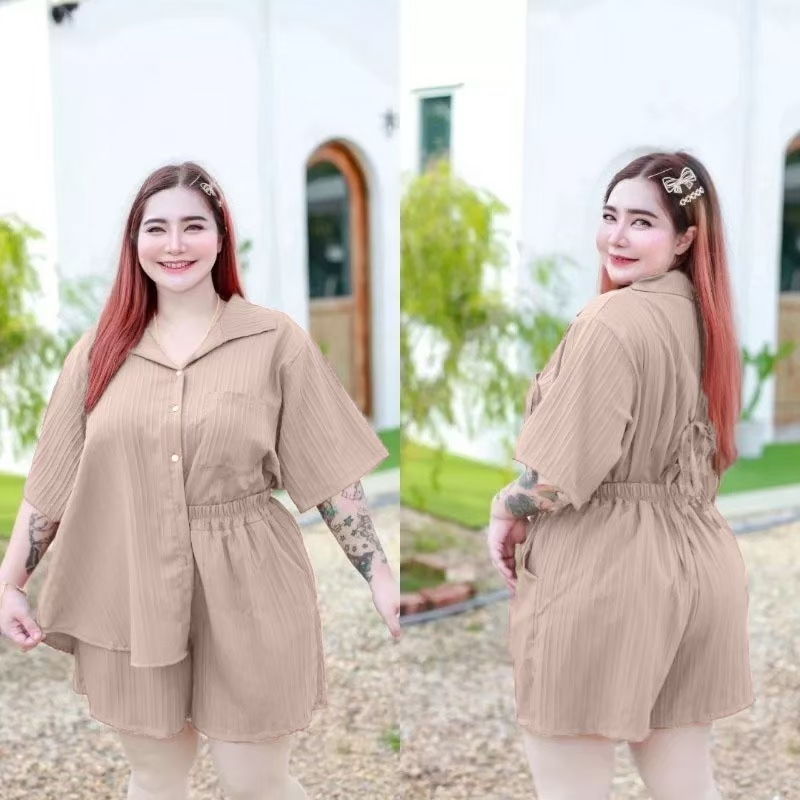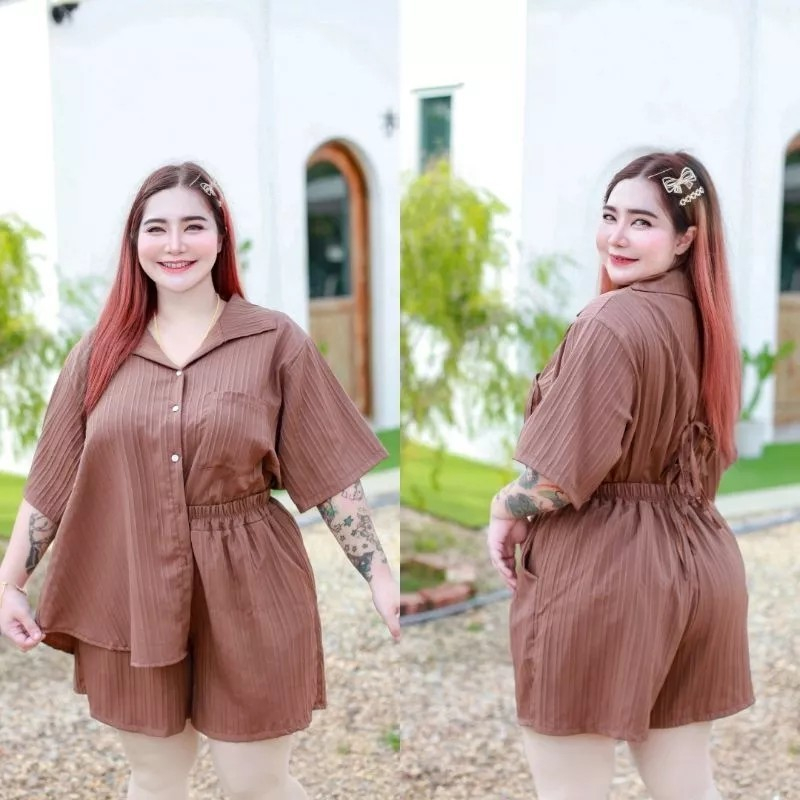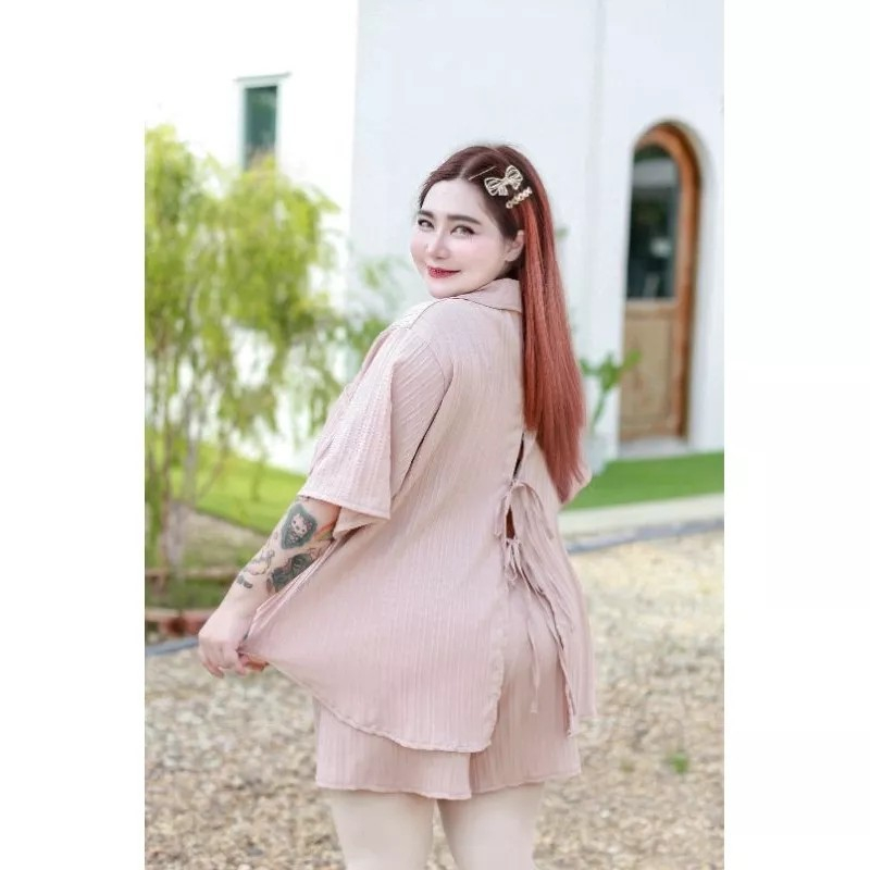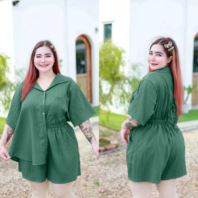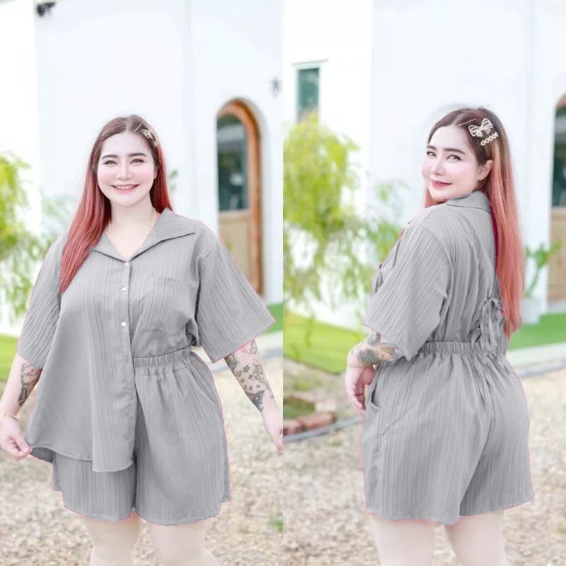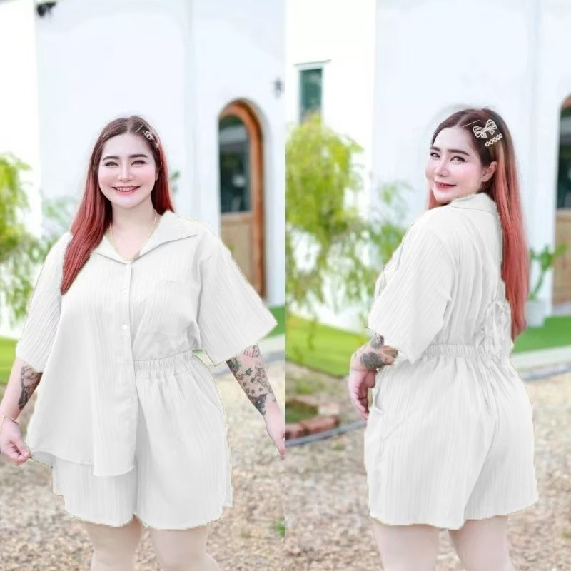 (โปรพิเศษวันนี้) C2ชุดเซ็ท คอปกขาสั้นผ่าหลัง แฟชั่นสาวอวบ-อ้วน น่ารักๆ อกฟรีไซซ์38-52 นิ้ว " ยาว27นิ้ว เอว28-48 นิ้ว