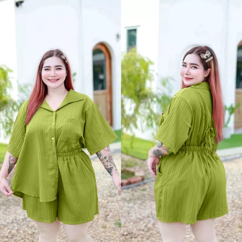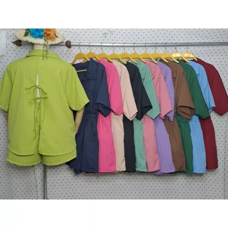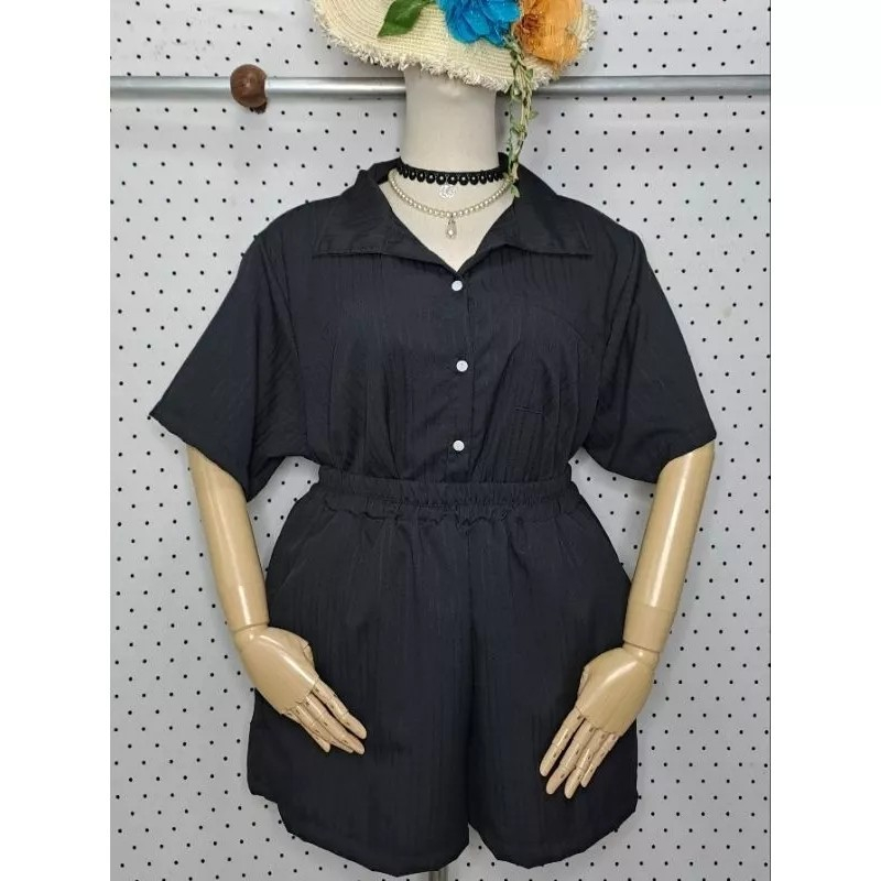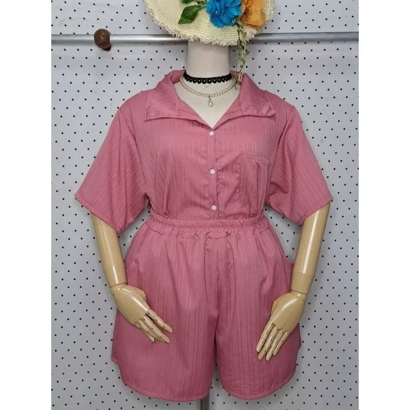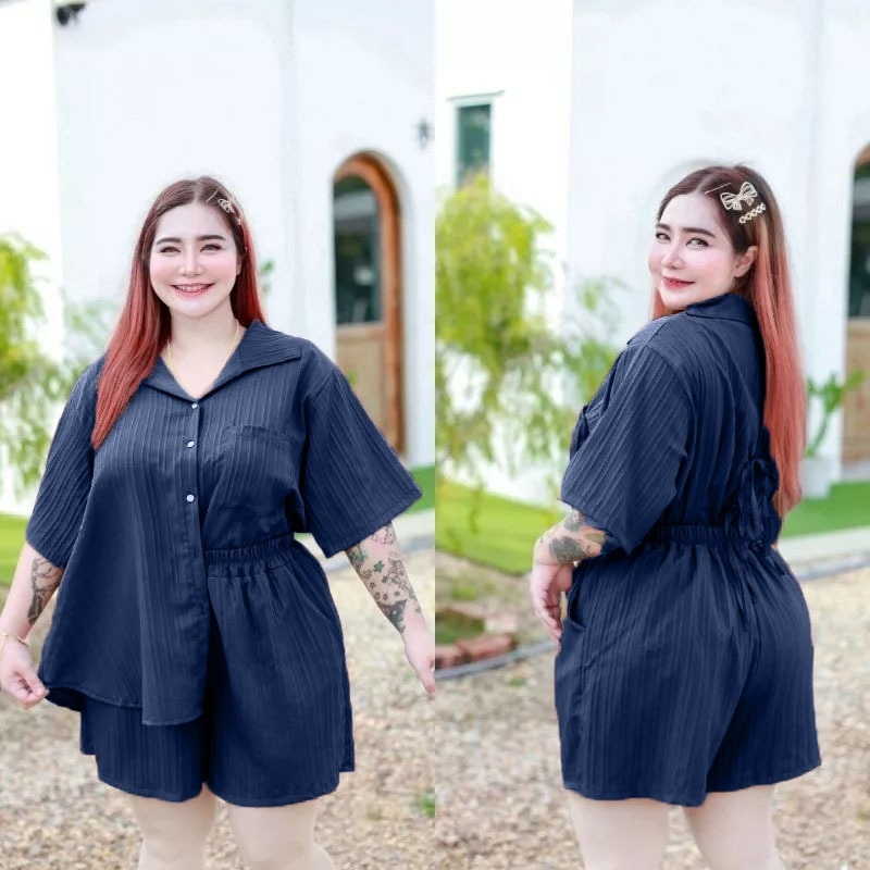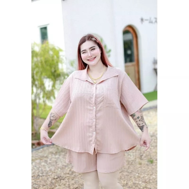 (โปรพิเศษวันนี้) C2ชุดเซ็ท คอปกขาสั้นผ่าหลัง แฟชั่นสาวอวบ-อ้วน น่ารักๆ อกฟรีไซซ์38-52 นิ้ว " ยาว27นิ้ว เอว28-48 นิ้ว