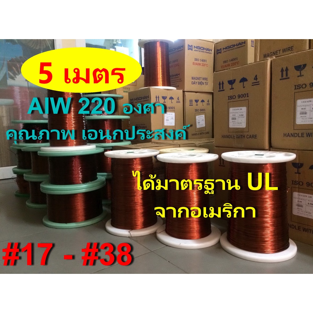 ลวดทองแดง 5 เมตร # 17 - # 38 อาบน้ำยา2ชั้น 220องศา ใช้งานได้เอนกประสงค์ พันมอเตอร์ หม้อแปลง ไดนาโม คอยล์