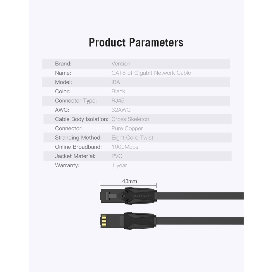 Vention สายอีเธอร์เน็ต CAT-6 อาร์เจ45 สายอินเตอร์เน็ต สายแลน CAT6 แบน 1,000Mbps กิกะบิตความเร็วสูง สายเคเบิลเครือข่าย ใช้ได้กับ แล็ปท็อป เราเตอร์