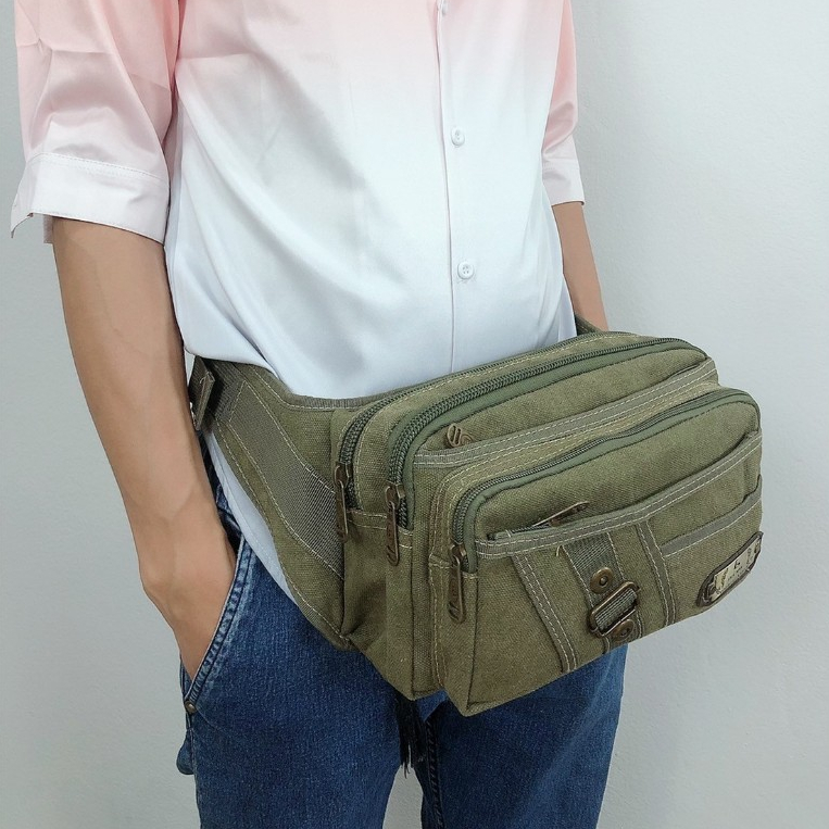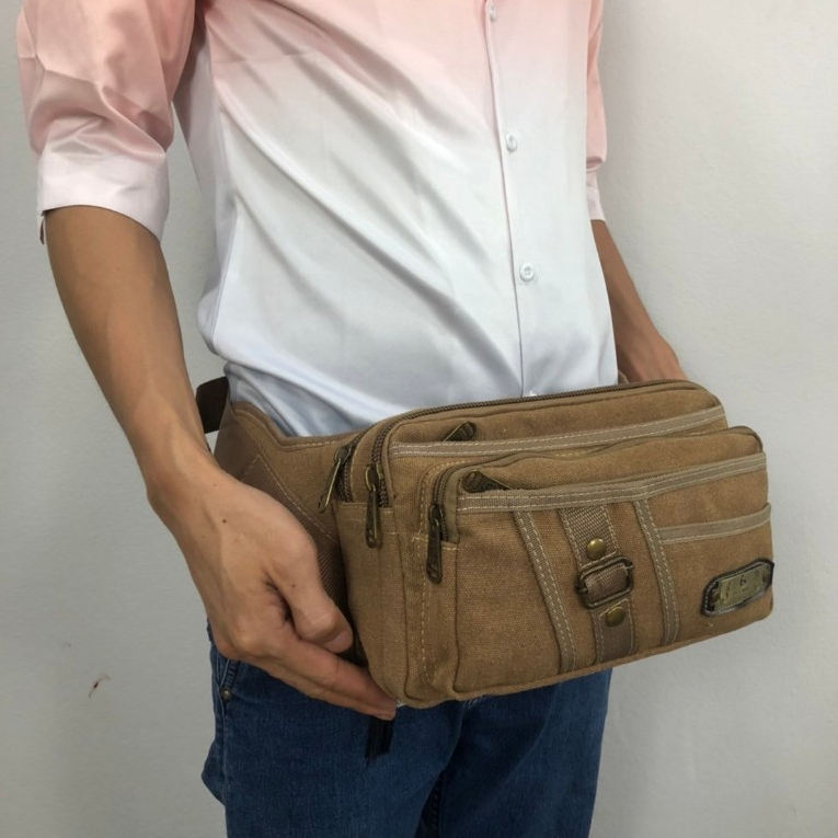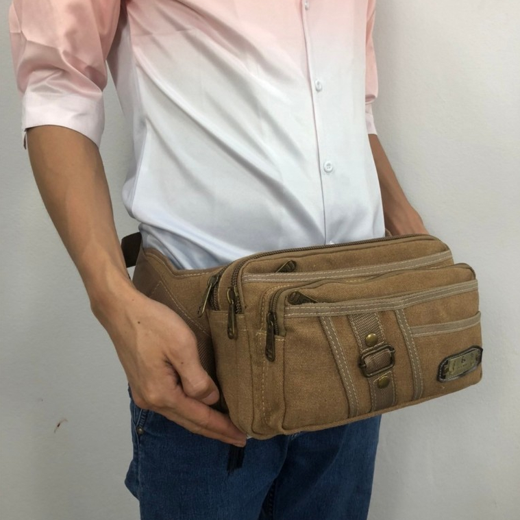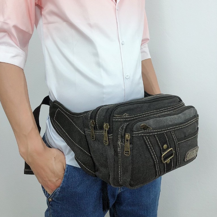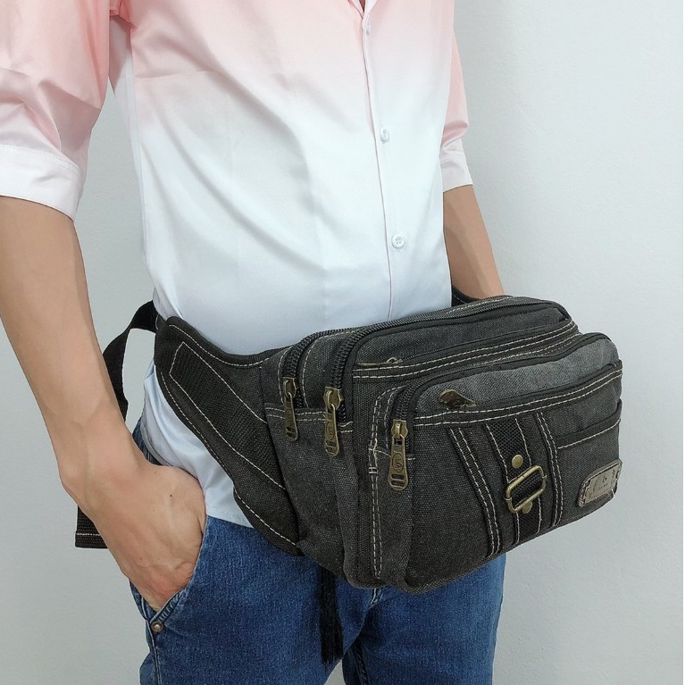 กระเป๋าคาดเอวใบใหญ่แบบผ้ากระสอบ กระเป๋าสะพายคาดลำตัวใส่ของอเนกประสงค์