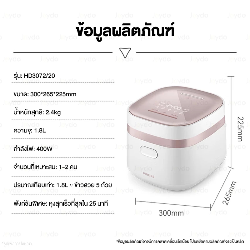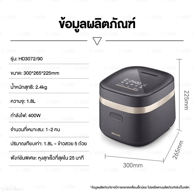 Philips Rice Cooker HD3072 หม้อหุงข้าว หม้อหุงข้าวอัจฉริยะ 1.8L หม้อหุงข้าวในครัวเรือน ตั้งเวลาล่วงหน้า 24 ชั่วโมง