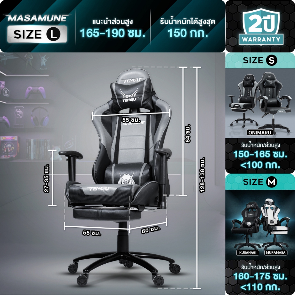 Tengu เก้าอี้เกมมิ่ง รุ่น Masamune Gaming Chair เก้าอี้เอนนอน180 รองรับน้ำหนัก 150 กก รับประกัน 2 ปี