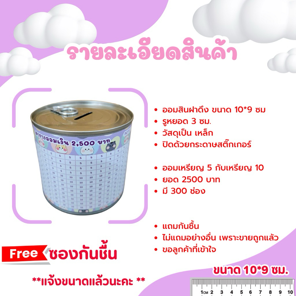 ออมสินฝาดึง กระปุกออมสิน พร้อม ตารางออม แปะให้แล้ว แถมกันชื้น
