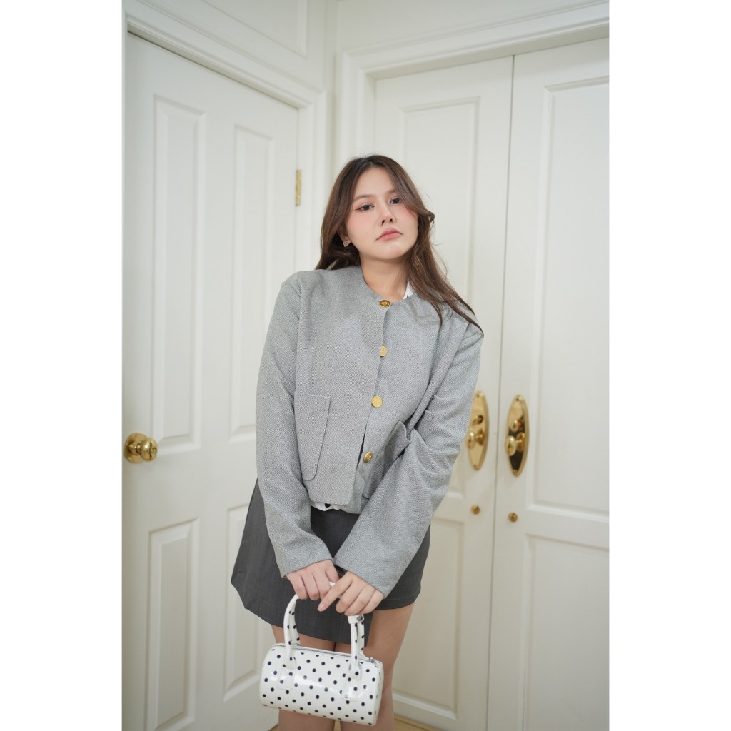 Mila Blazer 🤍 แจ็กเก็ตผ้า Wool Tweed 🎀 ดีไซน์เรียบหรู (T0214) - Merrychubbyhouse