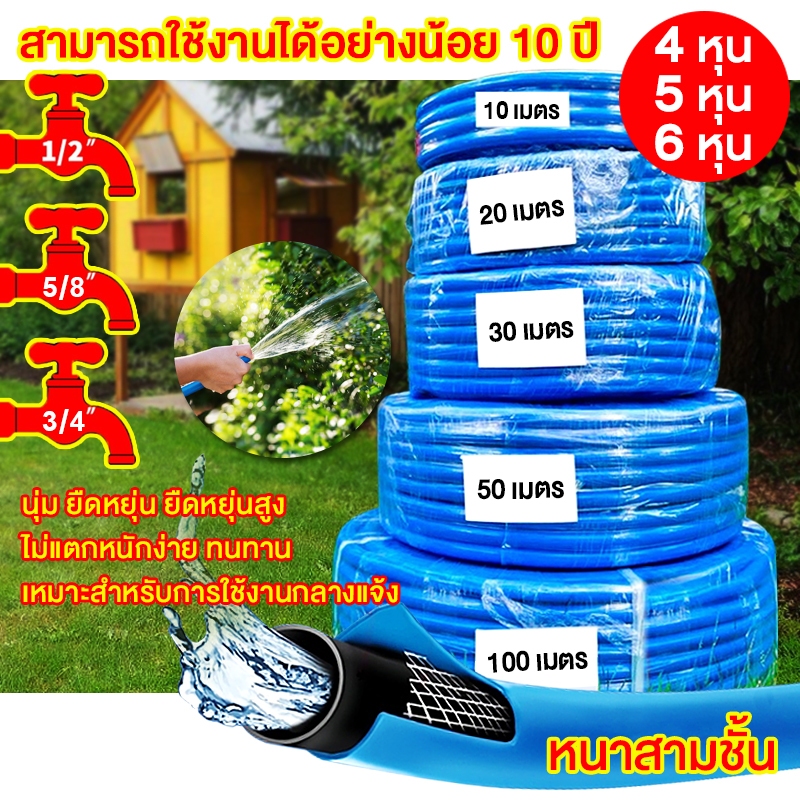 สายยาง 4หุน(1/2") /5หุน(5/8")/6หุน(3/4") สายยางสีฟ้า 15m~30m ท่อน้ำ ป้องกันการระเบิดหนา 3 ชั้น ท่อยาง ท่อน้ำแรงดันสู ง