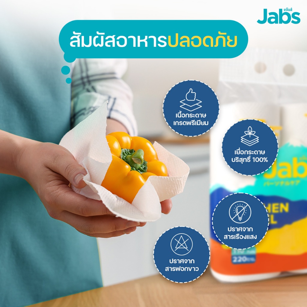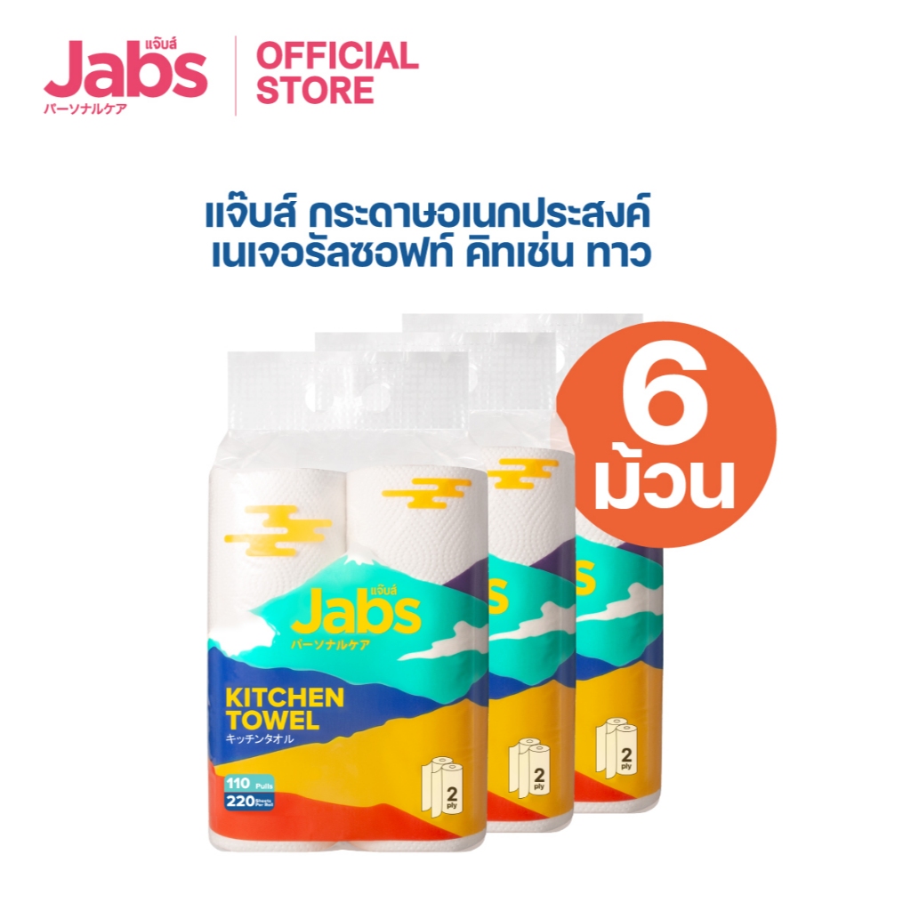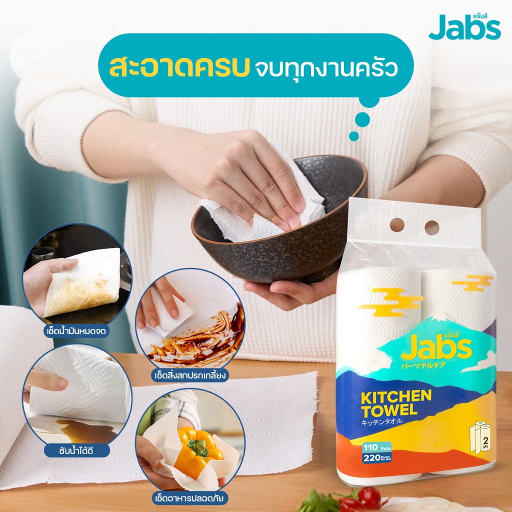 Jabs กระดาษอเนกประสงค์ 2 ม้วน (ม้วนละ 110 คู่/220 แผ่น) x3 แพ็ค