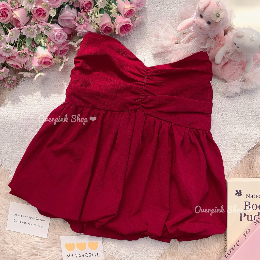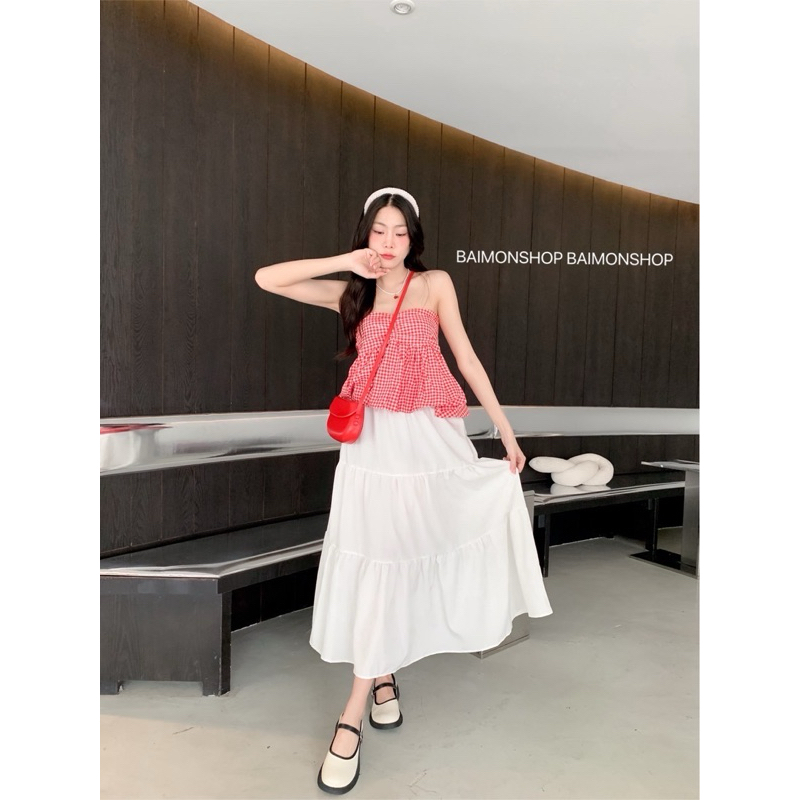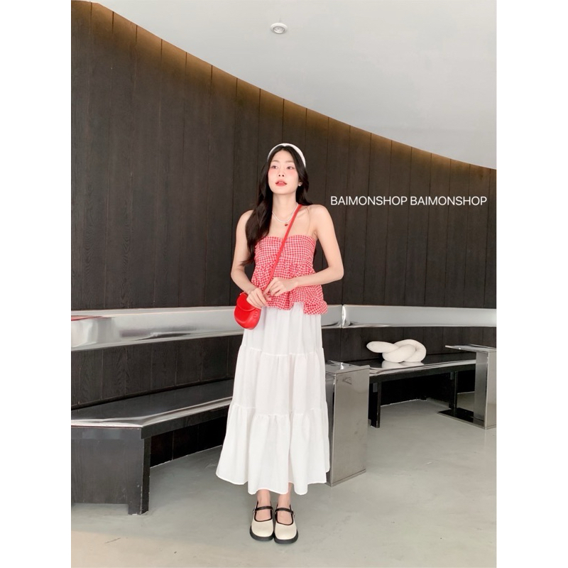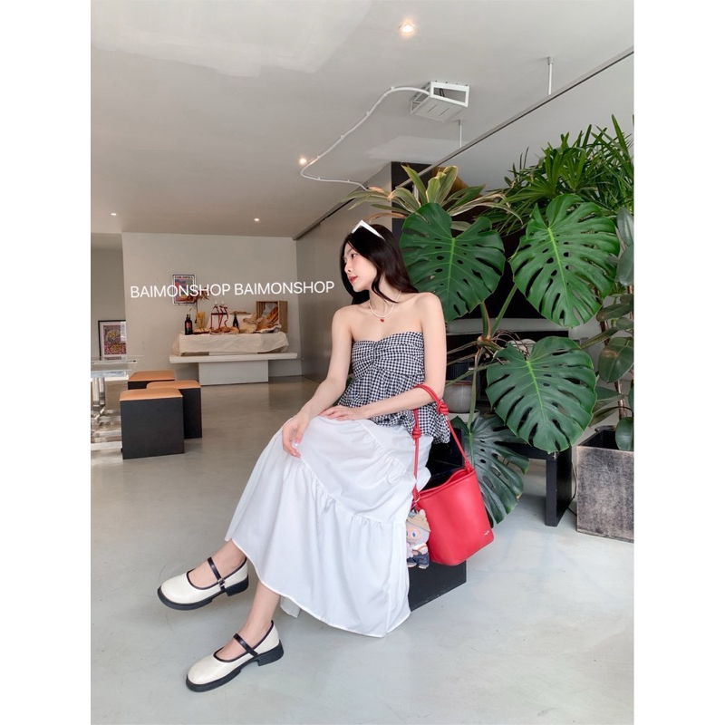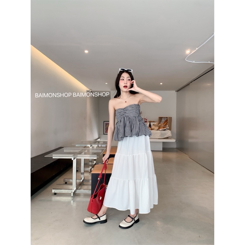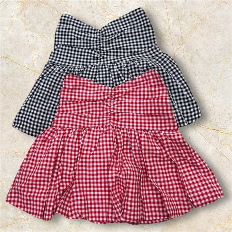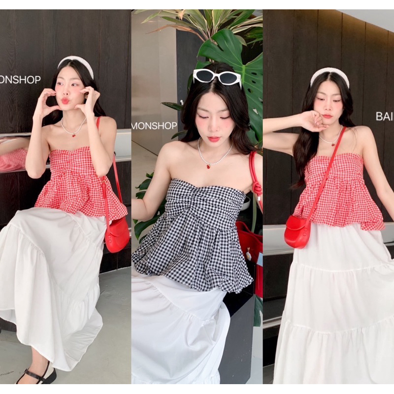 🌸OVP🌸 เสื้อเกาะอก จับจีบย่นอก ผ้าลายสก็อต งานฮิต