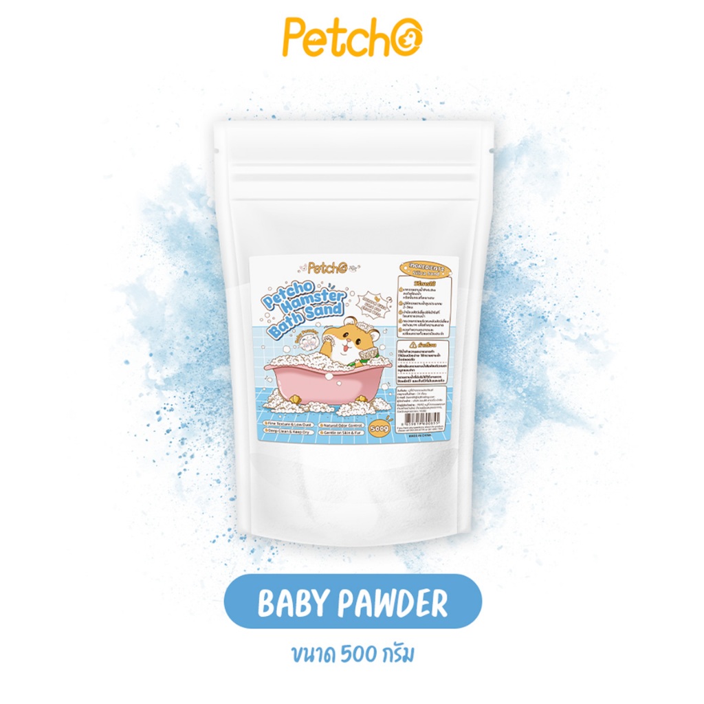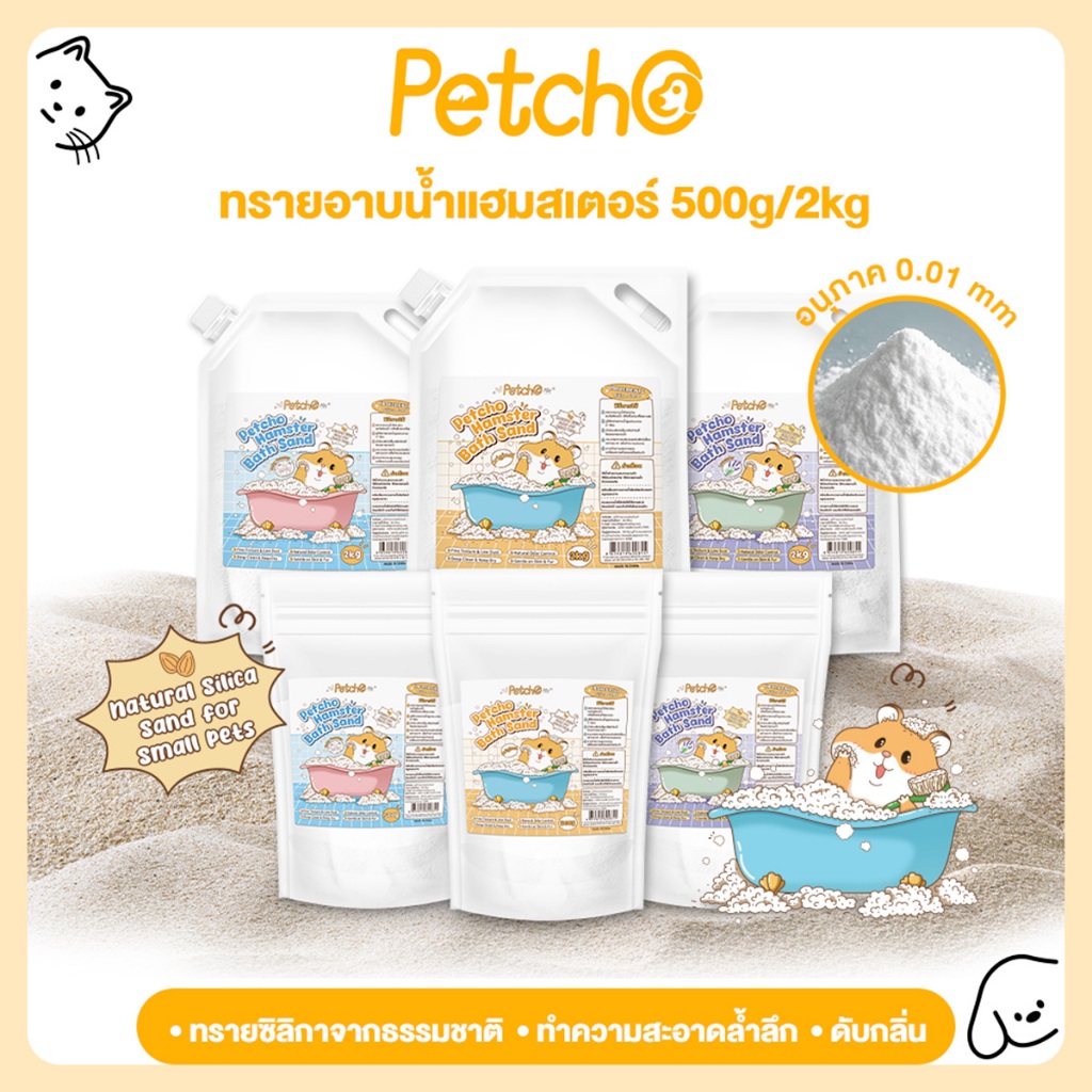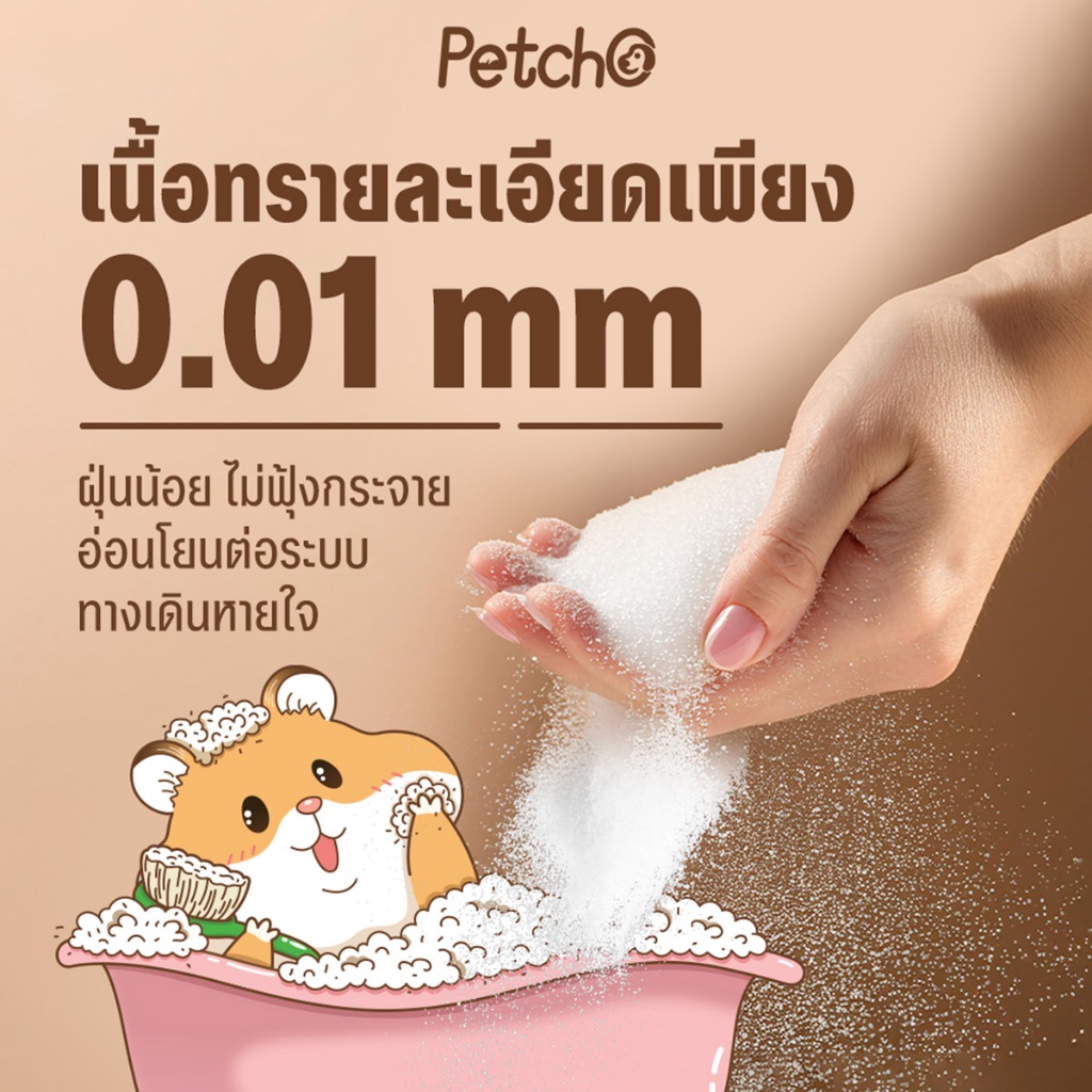Petcho ทรายอาบน้ำ สำหรับแฮมเตอร์ 0.01mmเม็ดทรายละเอียด ทำความสะอาดล้ำลึ ก ดับกลิ่นได้ดี อ่อนโยนต่อผิวหนังและขน