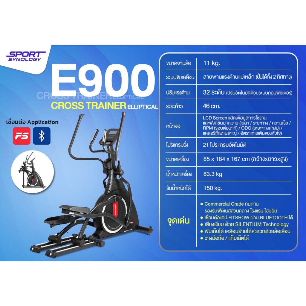 SPORT SYNOLOGY E900 Smart ULTRASOFT & SILENTIUM Technology เครื่องเดินวงรีเสียงเงียบ ระยะก้าว 46 cm