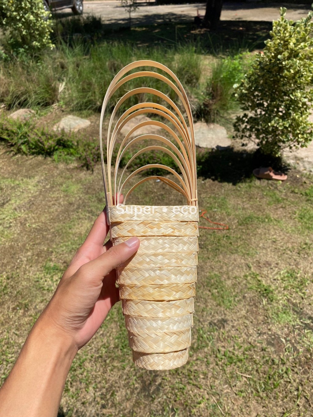 หูหิ้วไม้ไผ่ หูหิ้วแก้ว ลายถักสาน 100 ชิ้น/แพค แบบลายสานหูหิ้วแก้วไม้ไผ่ สำหรับใส่แก้ว 16-22 ออนซ์