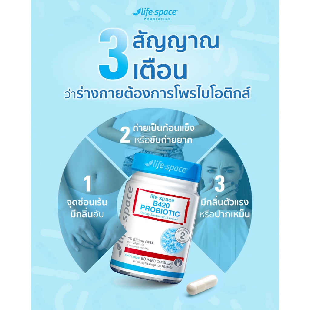 Life Space B420 โปรไบโอติก ฉลากไทย ขวดใหญ่60เม็ด /ขวดเล็ก30เม็ด EXP04/2027