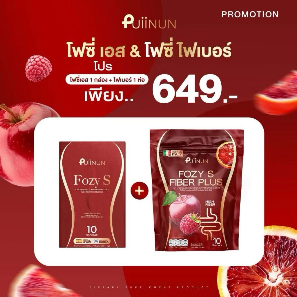 FOZY S & FOZY FIBER PLUS โฟซี่ เอส ปุยนุ่น โฟกัส Puiinun 1กล่อง 10 แคปซูล