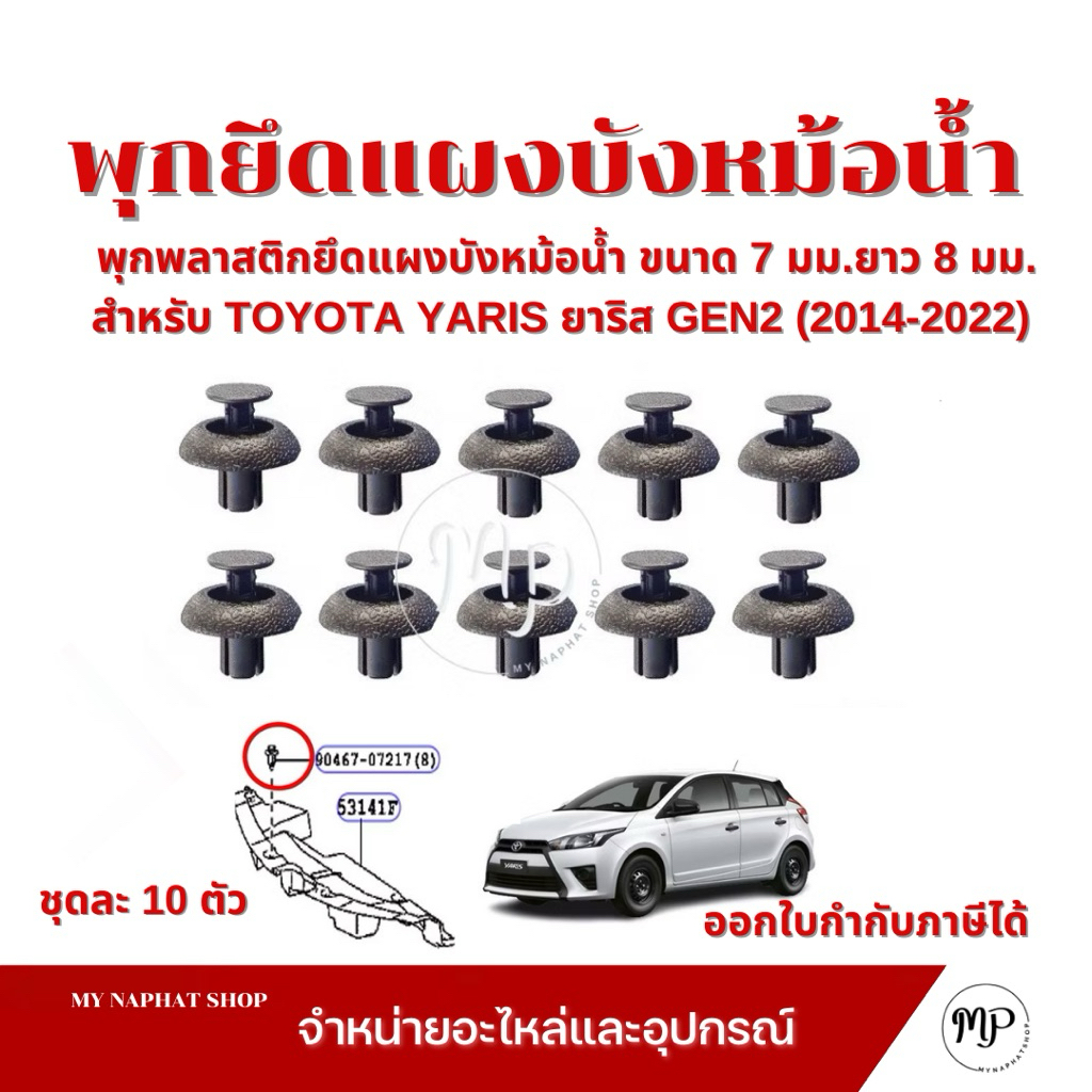 พุกพลาสติกยึดแผงบังหม้อน้ำ ขนาด 7 มม.ยาว 8 มม.สำหรับ TOYOTA YARIS ยาริส GEN2 (2014-2022) ชุดละ 10 ตัว