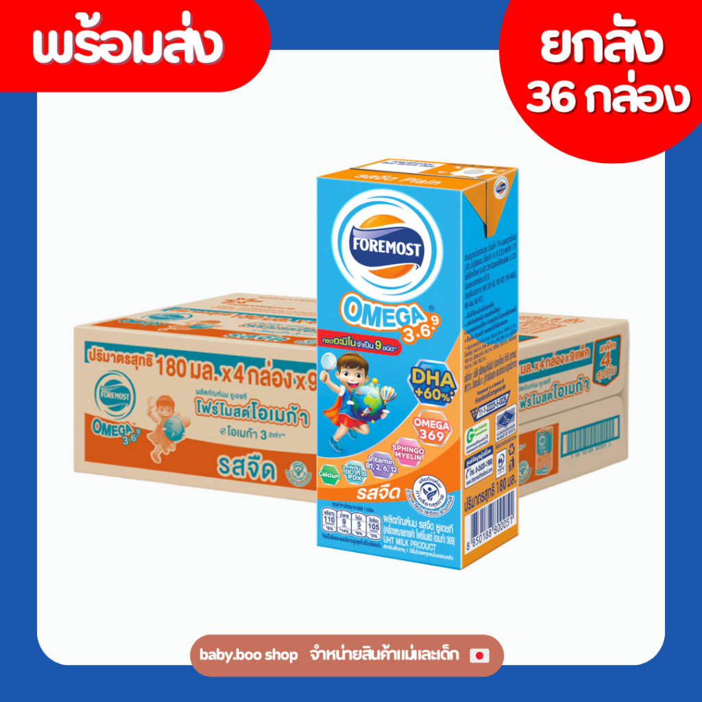 (ยกลัง 36 กล่อง) นมกล่องโฟร์โมสต์ โอเมก้า 369 รสจืด UHT Milk 180 มล. [36 กล่อง/ลัง]