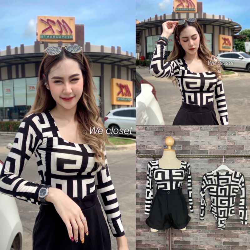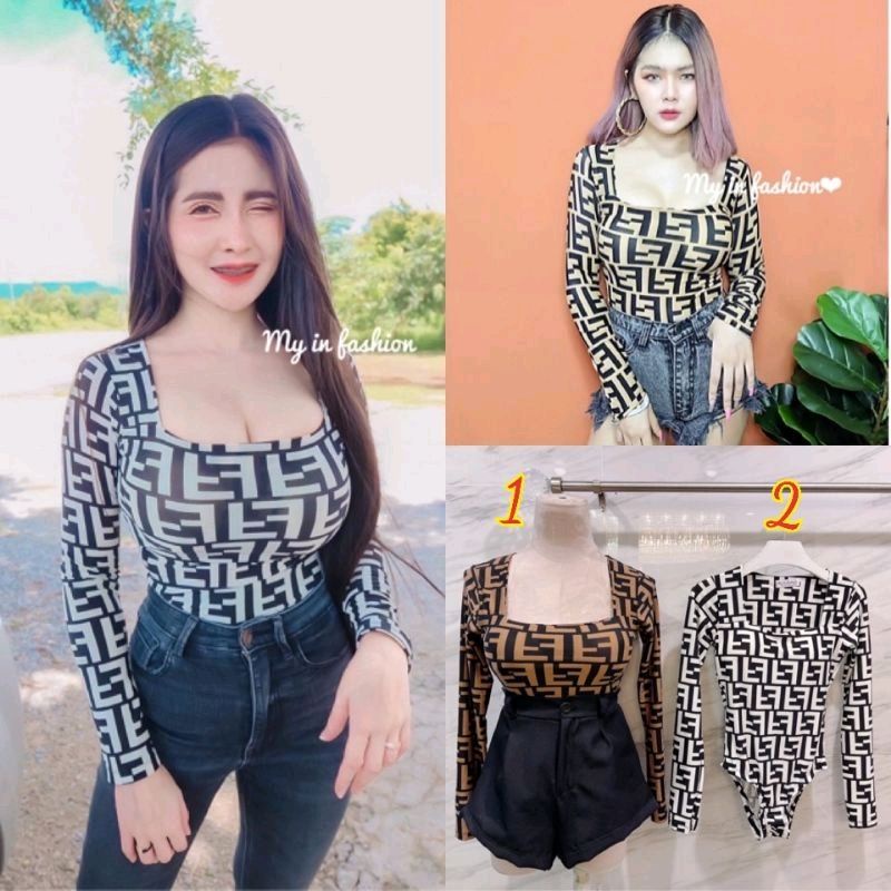 บอดี้สูทแขนยาวคอเหลี่ยม(เสริมฟองน้ำ)