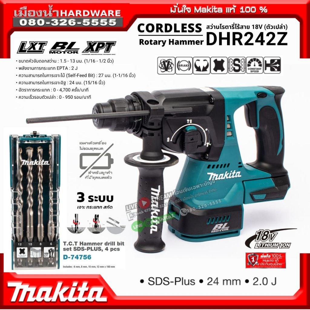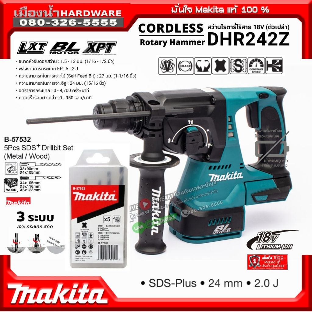 Makita DHR242 สว่านโรตารี่ 24MM DHR242z 18V BL Motor ตัวเปล่า DX06 ชุดดูดฝุ่นสำหรับ DHR242 มีเคาะ