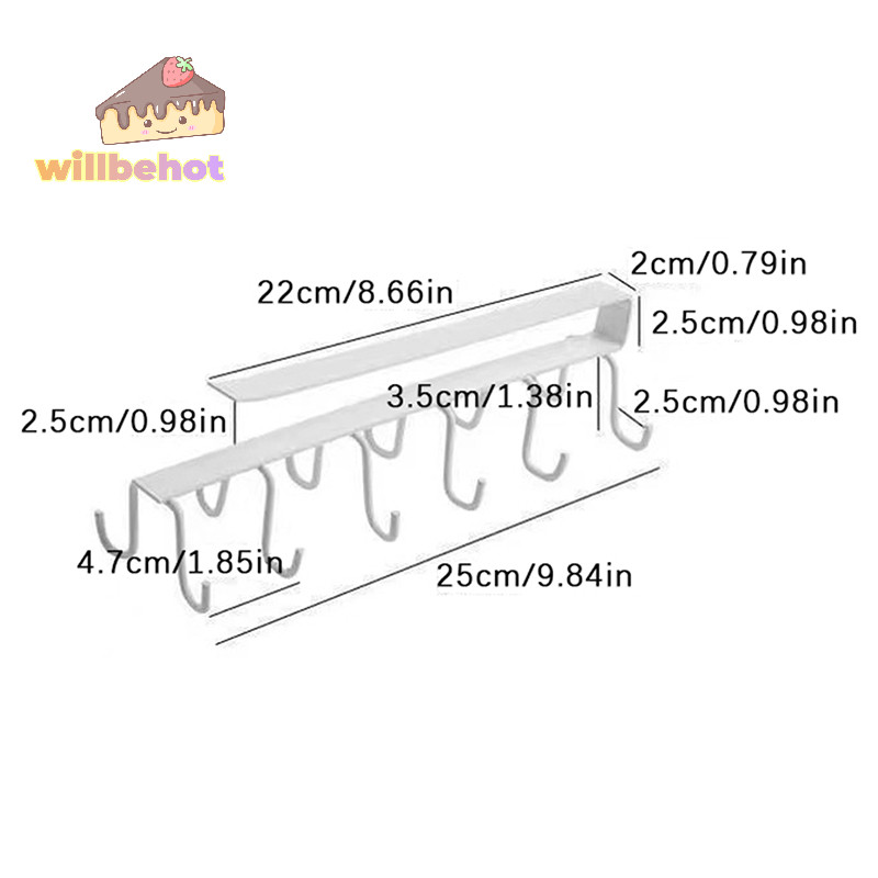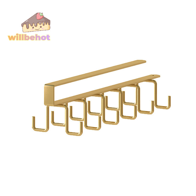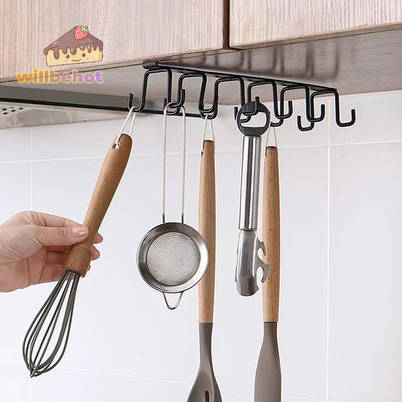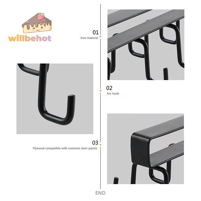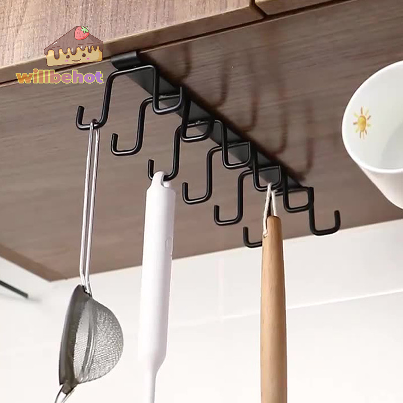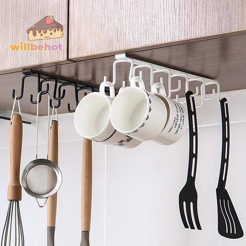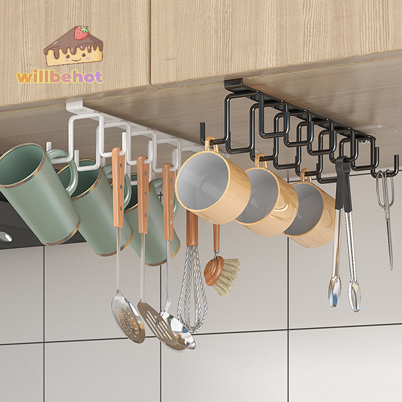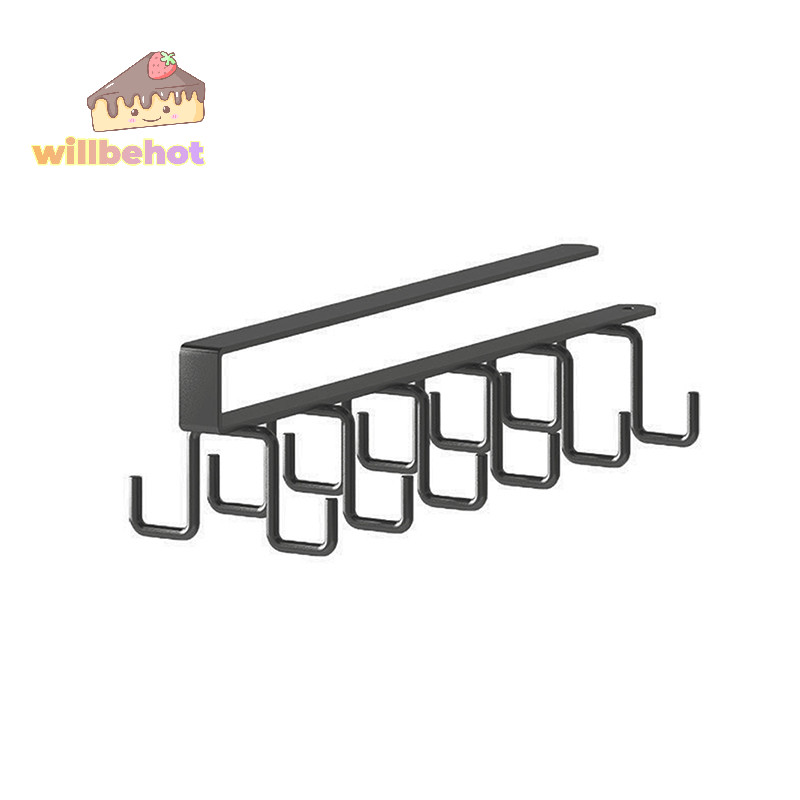 [WillbehotT] Punch-free Double-row Hooks ห้องครัวใต้ตู้ชั้นวางแก้วที่วางแก้วตะขอแขวนเหล็กที่วางตู้ครัวOrganizer [ใหม่]