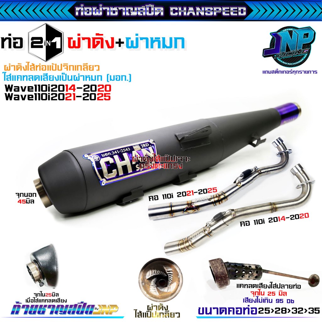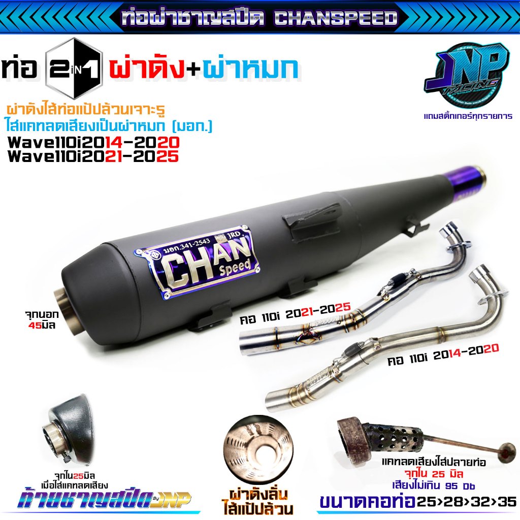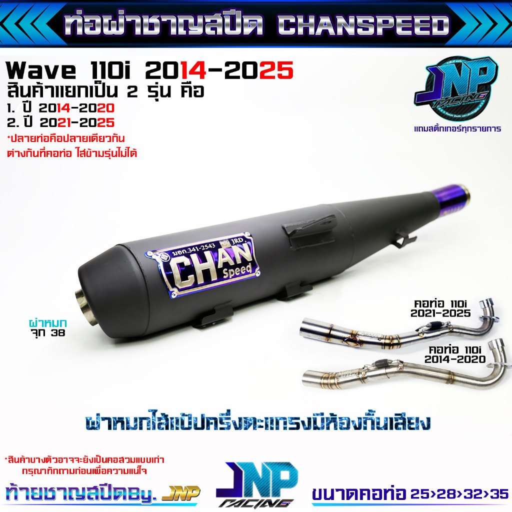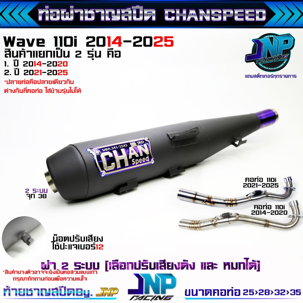 [Jnpracing] ท่อผ่า 110i ปี14-20 ทุกชนิด งานชาญสปีด ใส่110iปี2014-2020 แถมสติ้กเกอร์ร้านและท้ายชาญสปีด Chanspeed ..