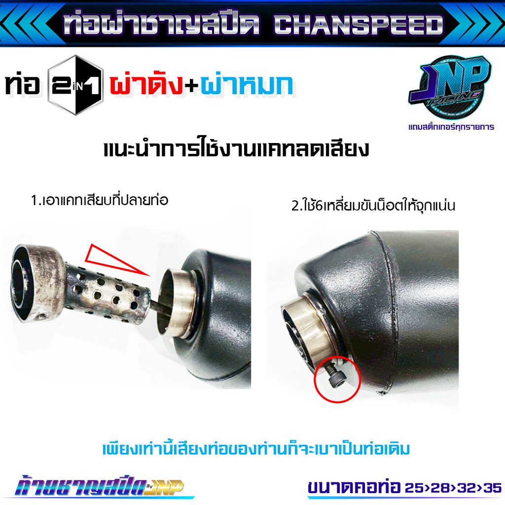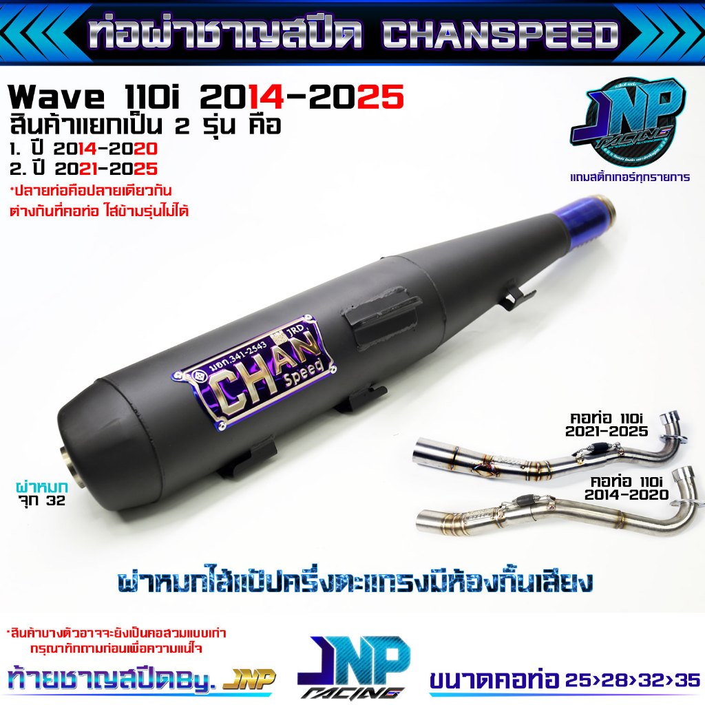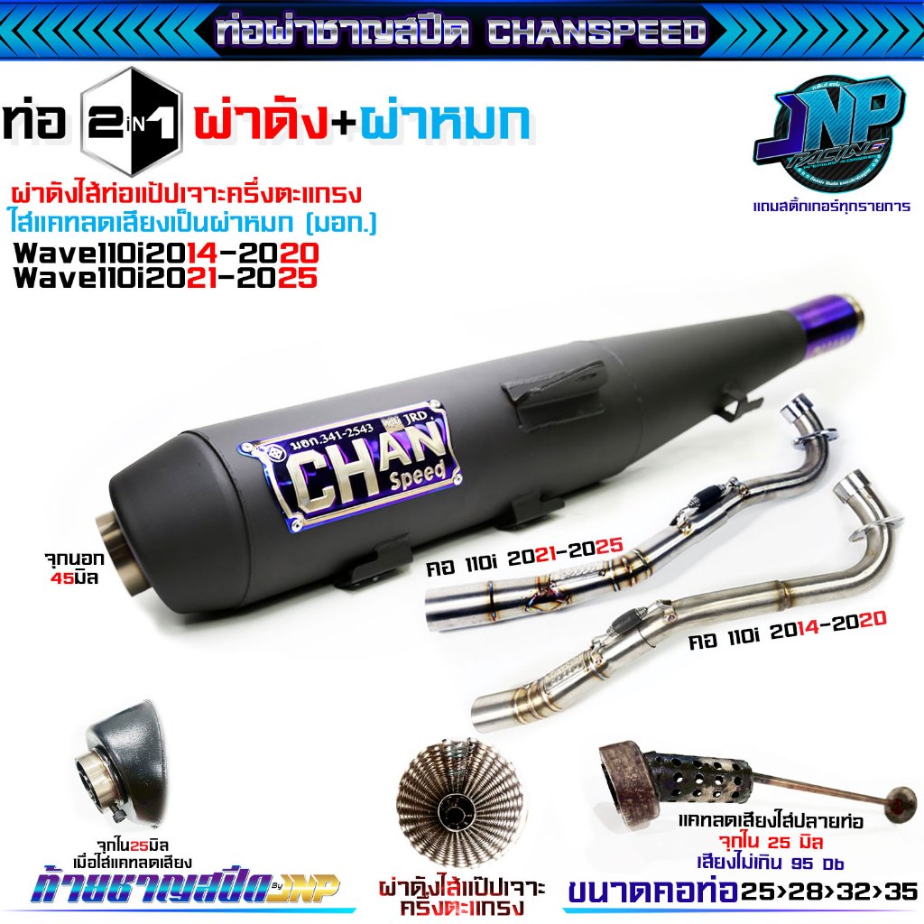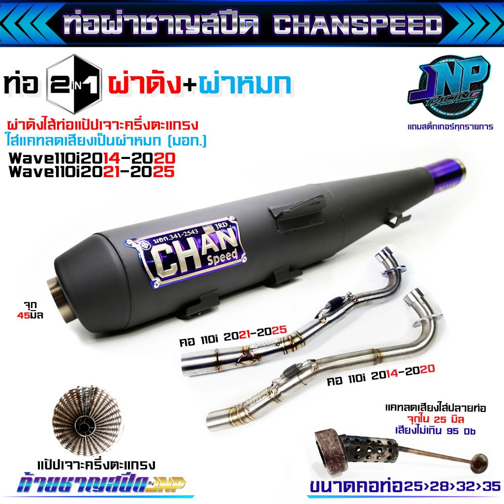 [Jnpracing] ท่อผ่า 110i ปี14-20 ทุกชนิด งานชาญสปีด ใส่110iปี2014-2020 แถมสติ้กเกอร์ร้านและท้ายชาญสปีด Chanspeed ..