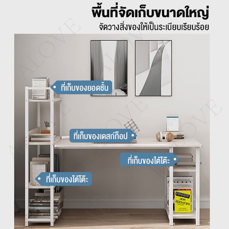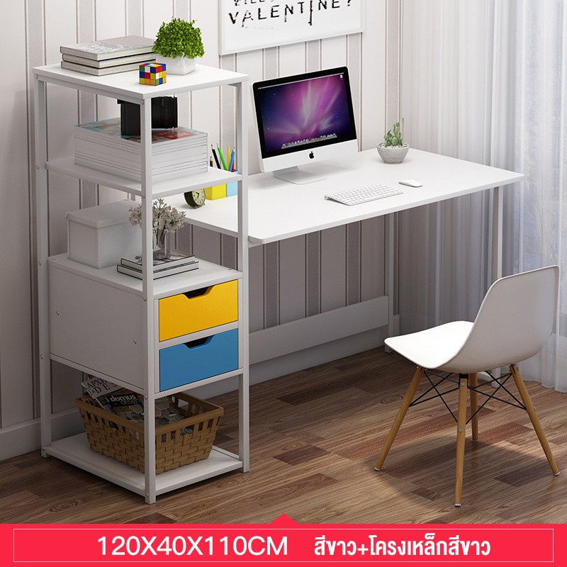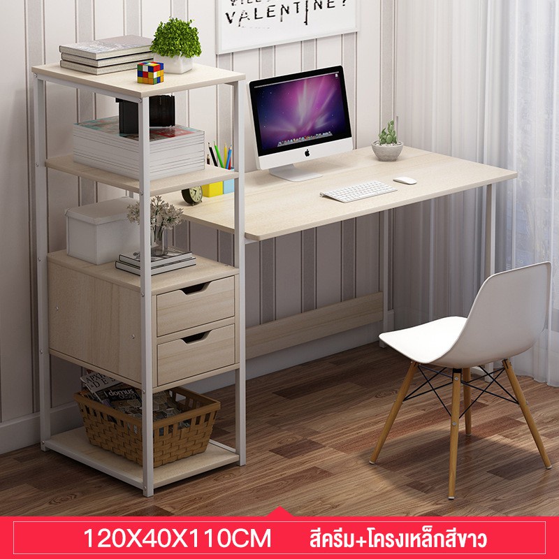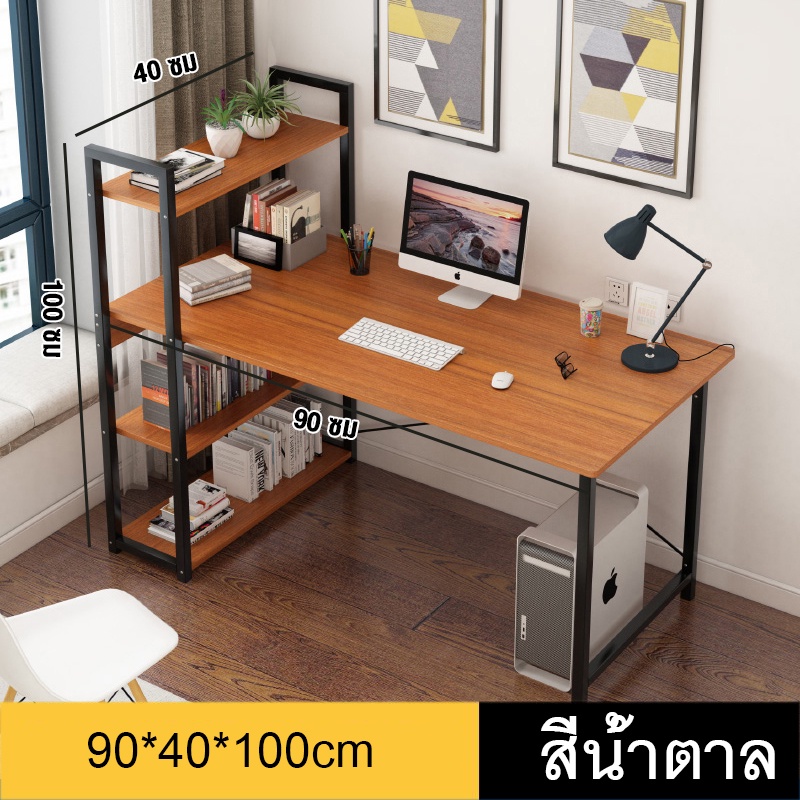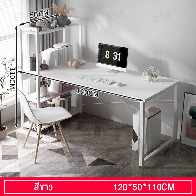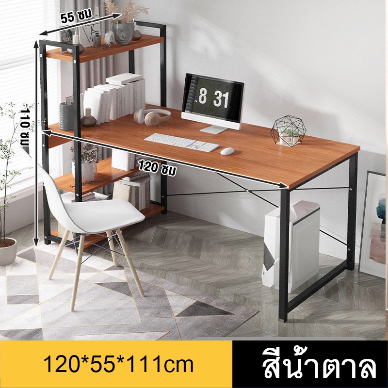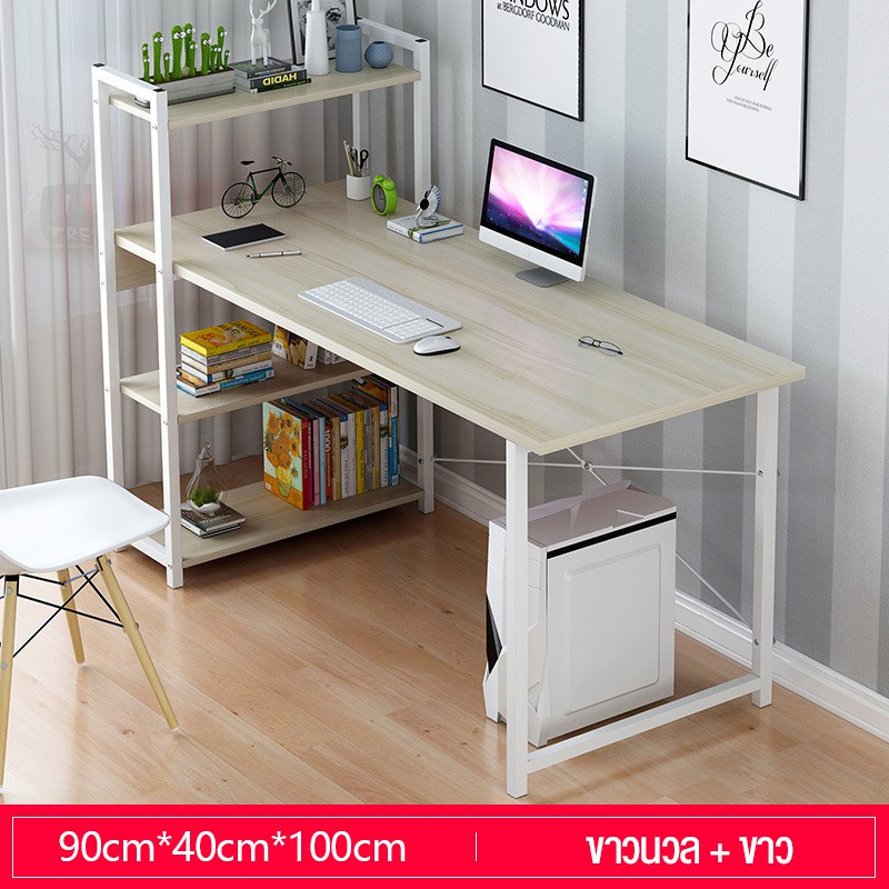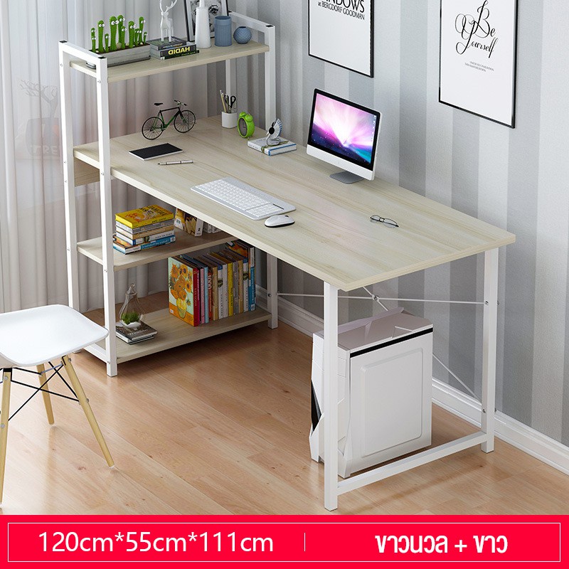 【รุ่นอัพเกรด】90/120CM โต๊ะคอมพร้อมชั้นวางหนังสือ พื้นที่จัดเก็บขนาดใหญ่มาก โต๊ะทำงาน computer desk