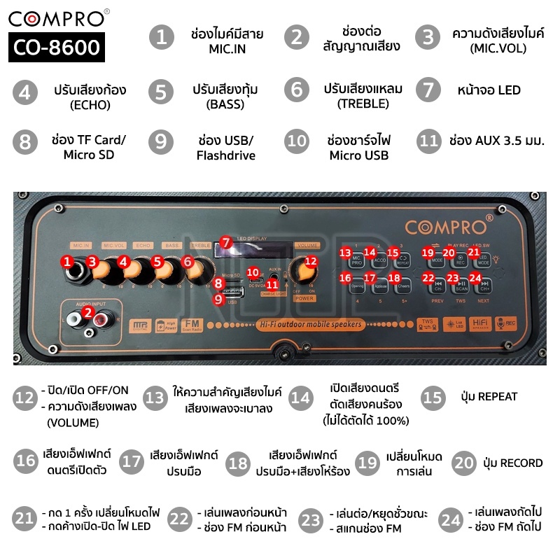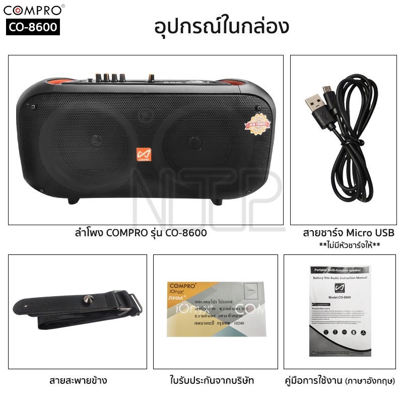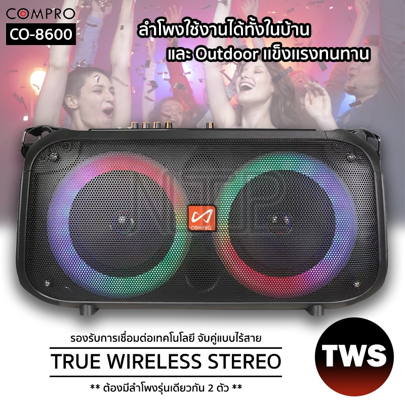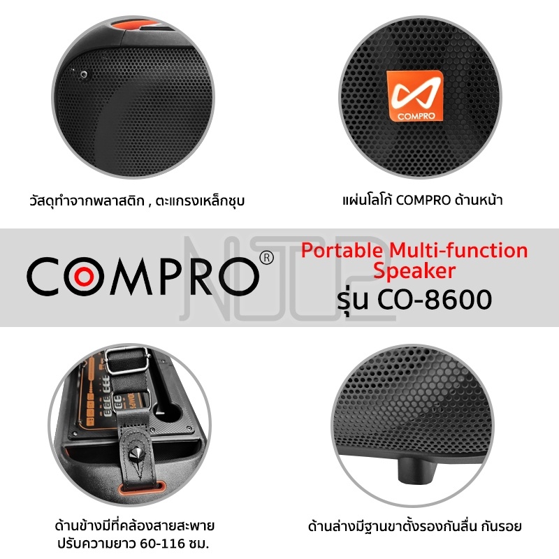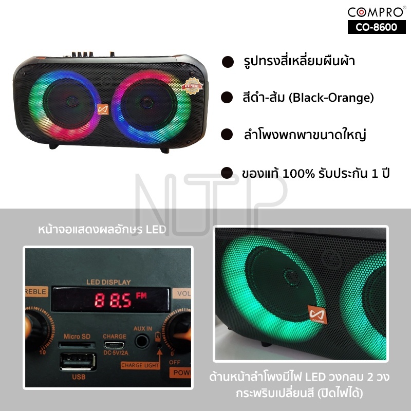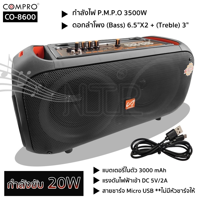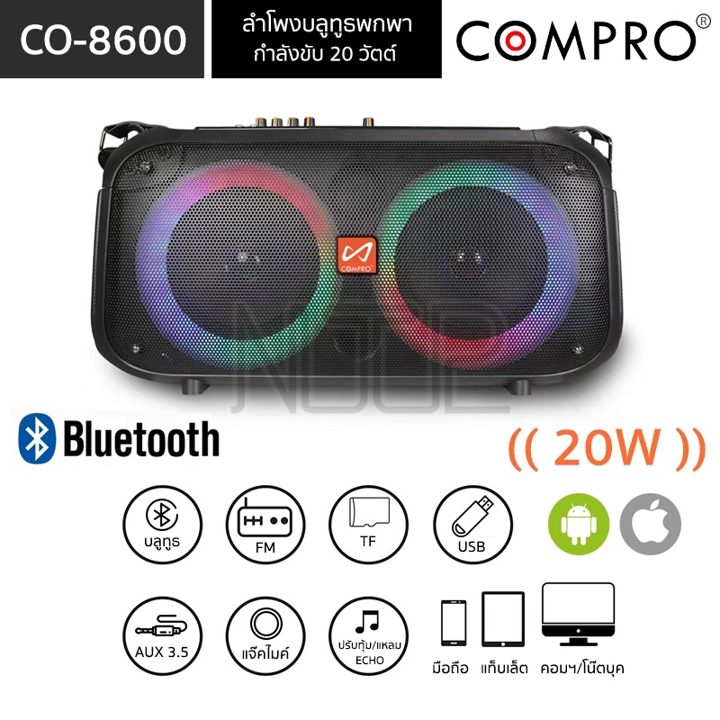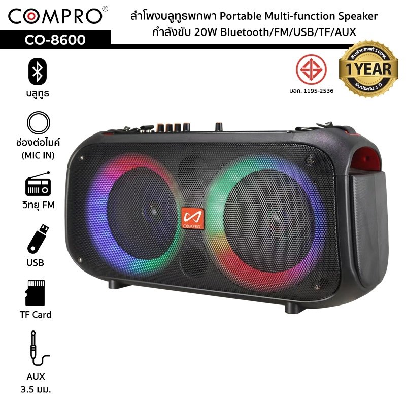 COMPRO รุ่น CO-8600 ลำโพงบลูทูธพกพา กำลังขับ 20W Bluetooth/FM/USB/TF/AUX Portable Multi-function Speaker รับประกัน 1ปี