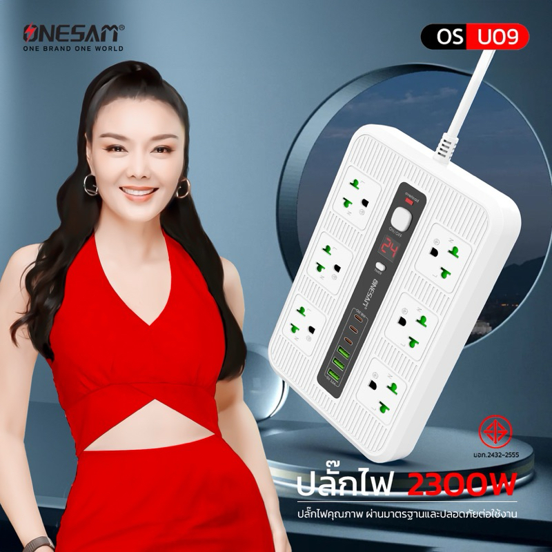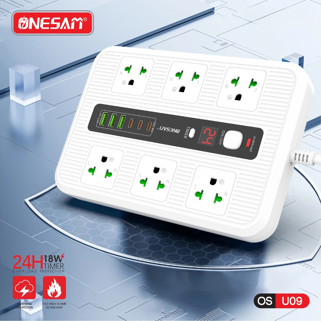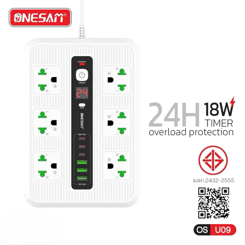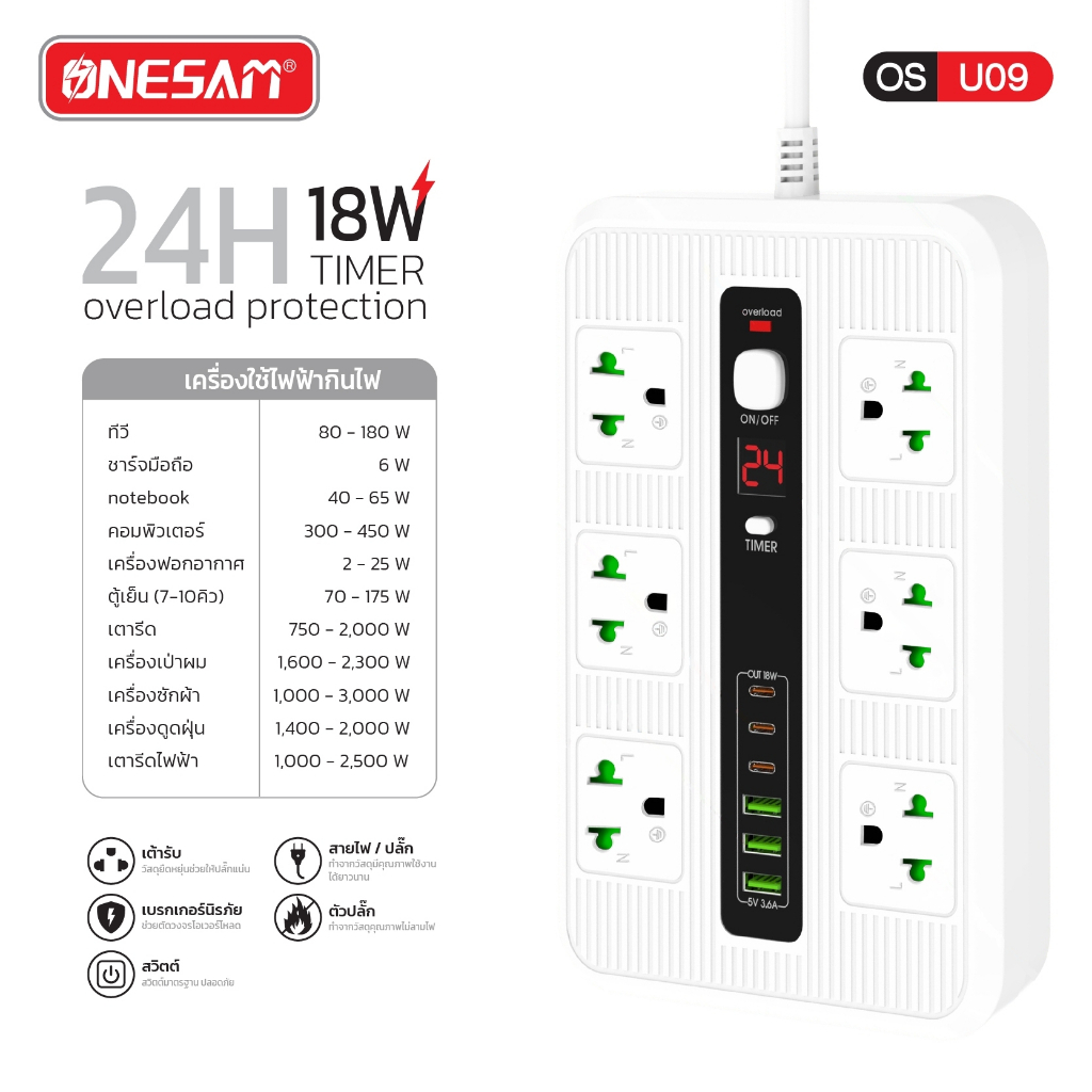 ปลั๊กไฟ ONESAM รุ่น OS-U09 3 USB พอร์ต และ 3 PD พอร์ต ชาร์จไว 3.6A สายยาว 2,5 เมตร ของแท้ 100% รับประกัน 1 ปี