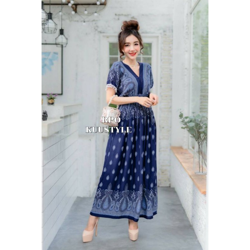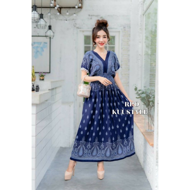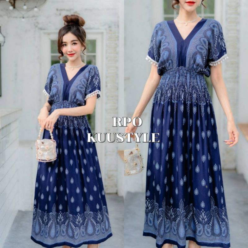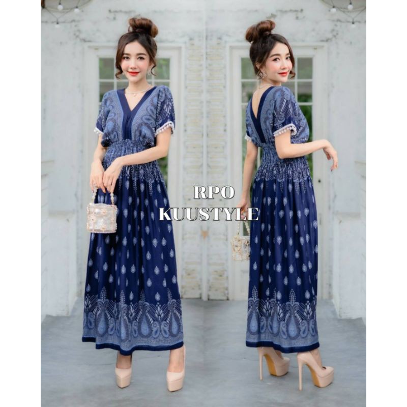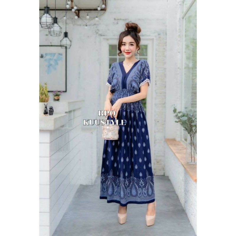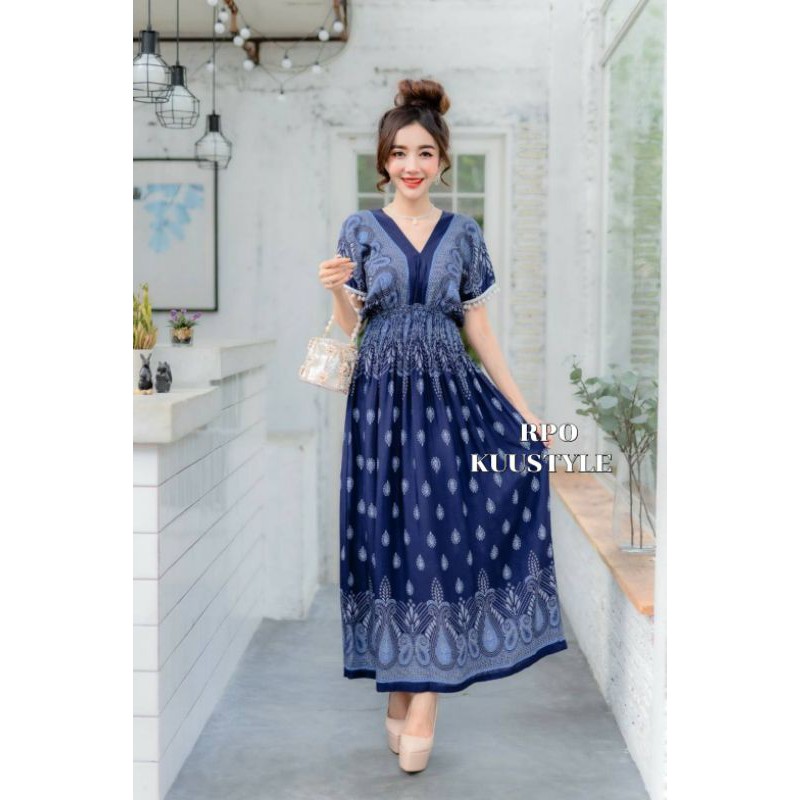 เดรสลายไทยหยดน้ำผ้าสปันยืดหยุ่นได้เยอะ