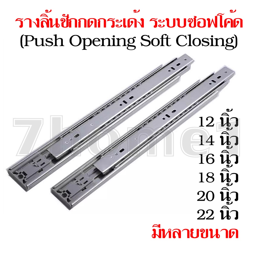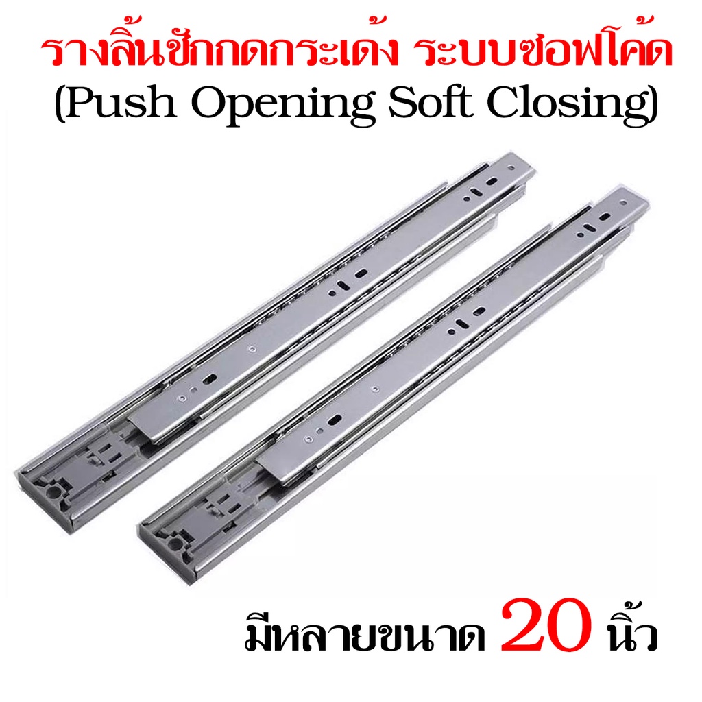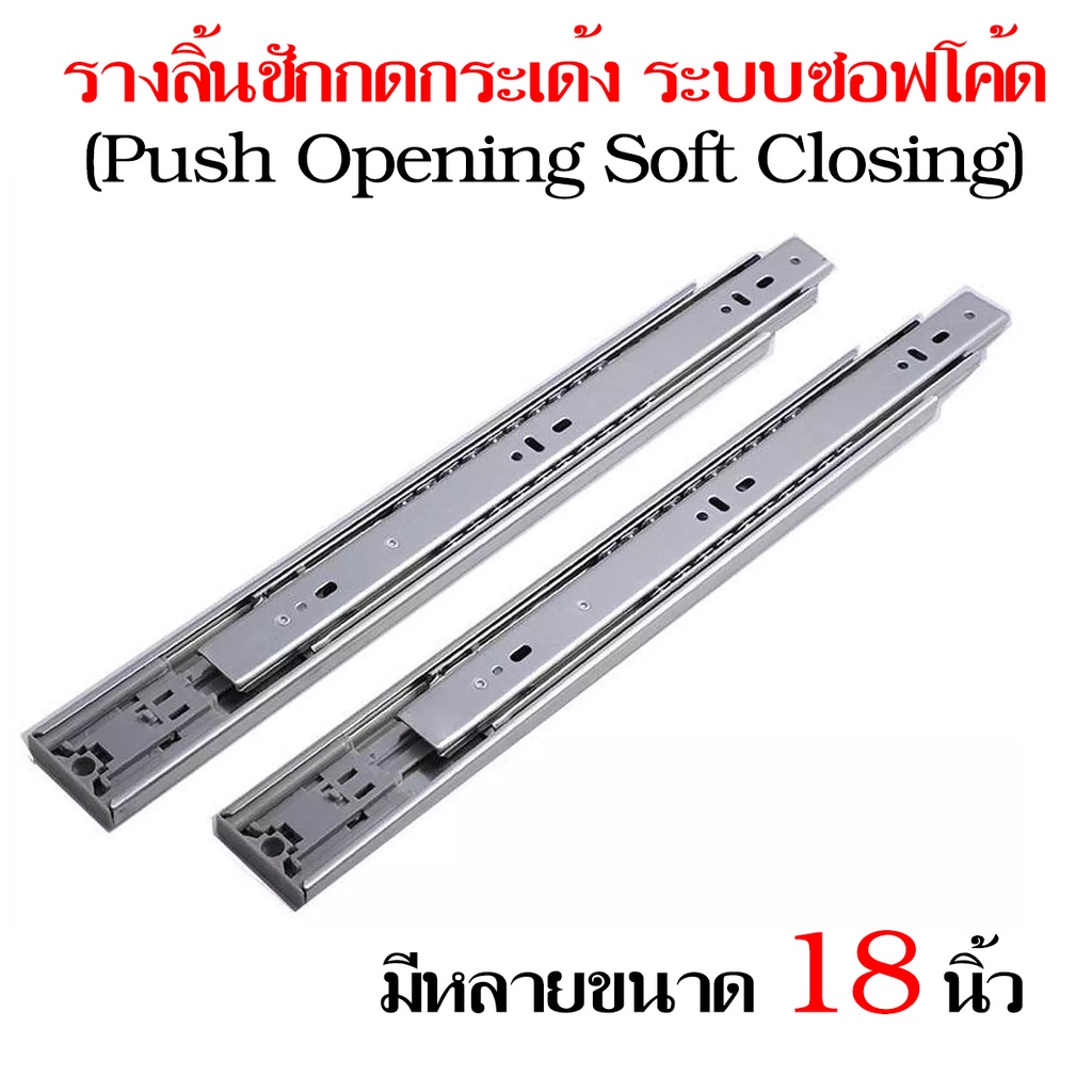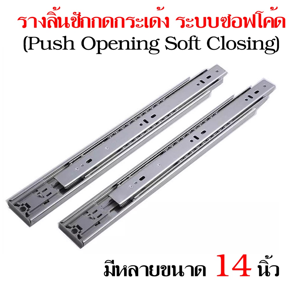 รางลิ้นชักกดกระเด้งและปิดเอง 3 ตอน แบบลูกปืนบอล 1คู่(2ชิ้น) ระบบซอฟโค้ด (Push Opening Soft Closing)