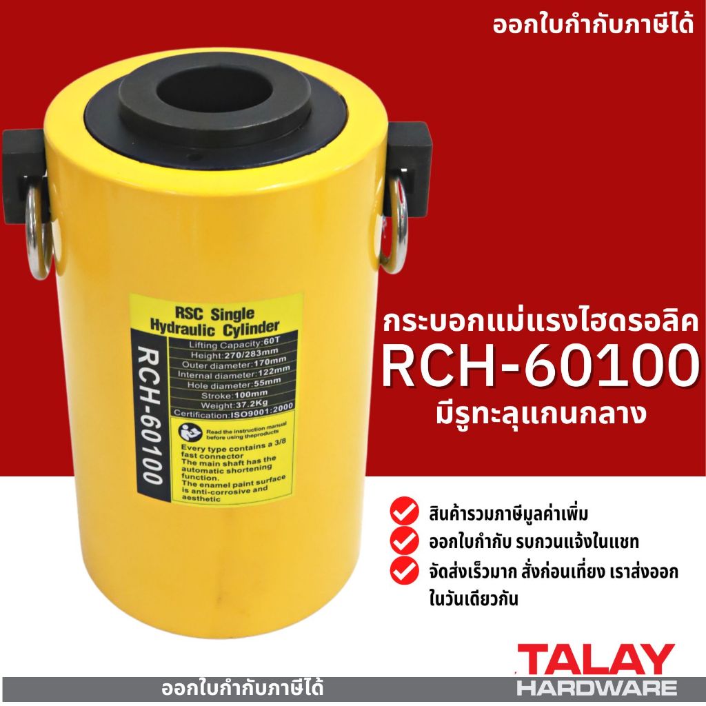 RCH60100 Hydraulic Cylinders กระบอกแม่แรงไฮดรอลิคแบบมีรู RCH60100 กระบอกแม่แรงไฮดรอลิค 60 ตัน
