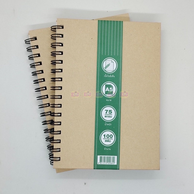 สมุดปกแข็งสันลวด A5 (100 แผ่น/เล่ม) สมุดปกแข็ง สันลวด สมุด สมุดบันทึก ปกน้ำตาลสันห่วง
