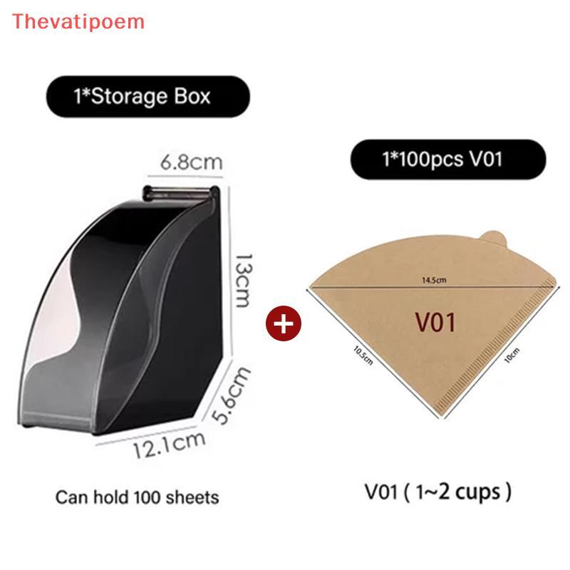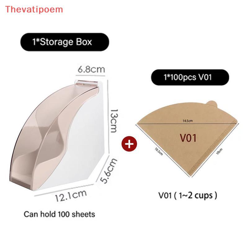 [Thevatipoem] กระดาษกรองกาแฟ 100 ชิ้นกล่อง V01 V02 เครื่องชงกาแฟกรอง Bleach พร้อมกล่องอะคริลิคป้องกันฝุ่น HOT