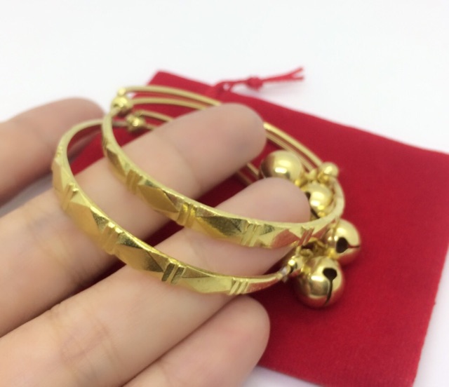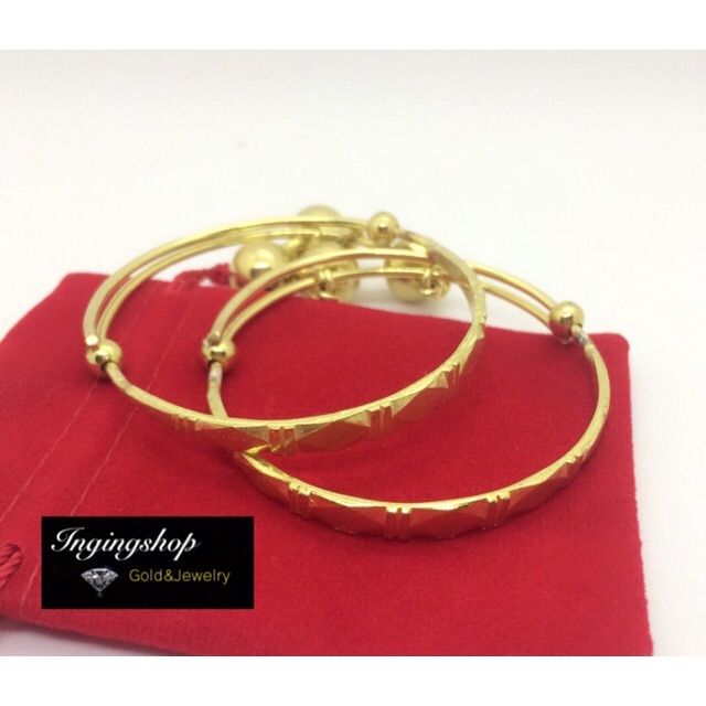 กำไลข้อเด็กเท้าลายข้าวหลามตัดงานทองเหลืองแท้ สอบถามขนาดได้ค่ะ ราคาคู่ละ 100 ถูก