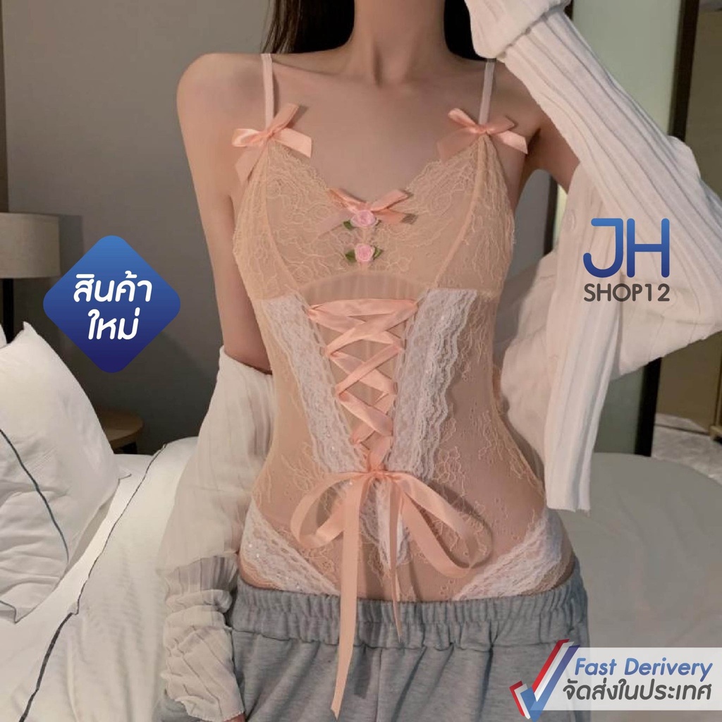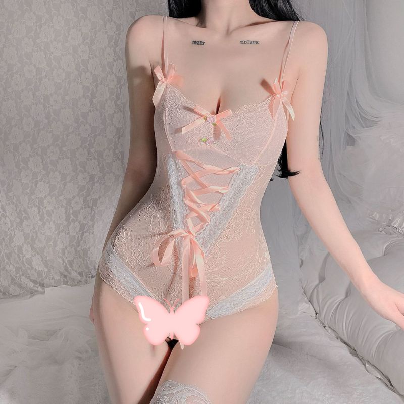 🌈jhshop12🌷 ชุดบอดี้สูท body suit เป้าเปิดได้ ตกแต่งลูกไม้น่ารัก ผ้าซีทรู สินค้าพร้อมส่งจากไทย (S052)