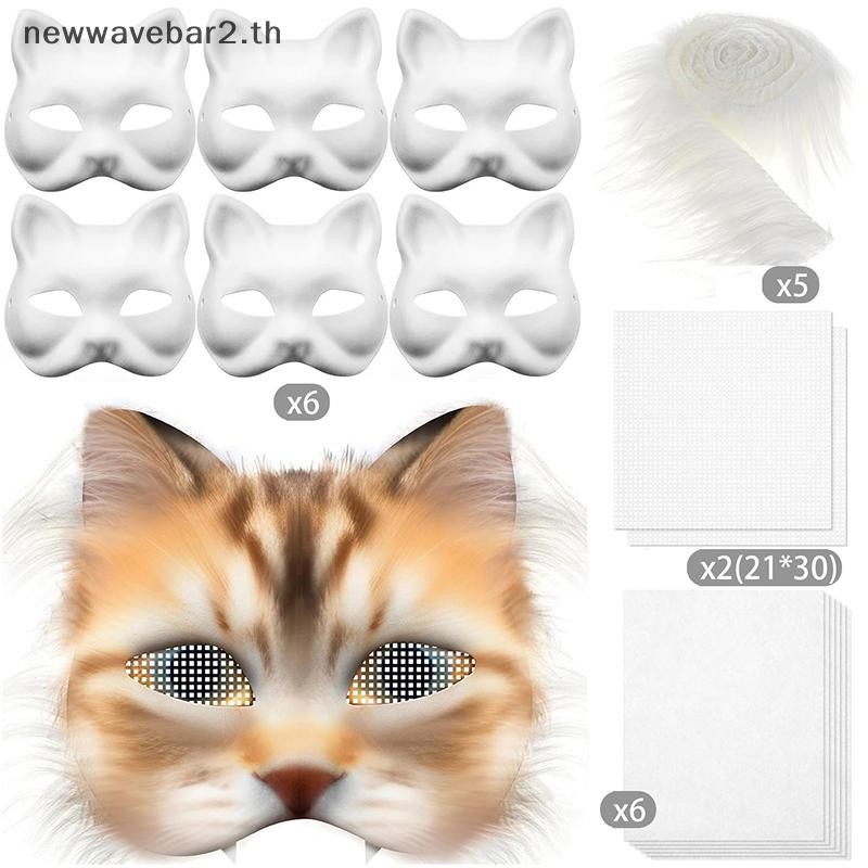 # waveba # 29 ชิ้นหน้ากากชุดหน้ากากเปล่าครึ่งหน้ามือวาดสัตว์ Fox Mask DIY Handmade Graffiti หน้ากากครึ่งหน้า Party ของขวัญคริสต์มาส.