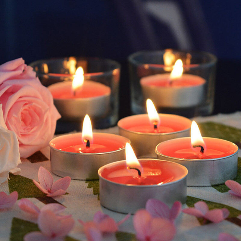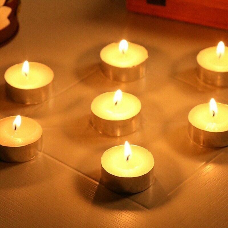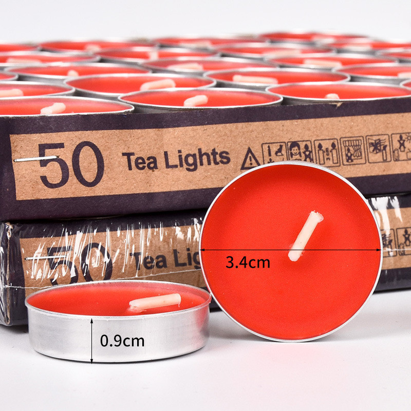 🔥เทียนทีไลท์ Tealight ของแท้ (แพ็ค 50 ชิ้น)ร้กลิ่น ไร้ควัน สีขาว แดง สีชมพู สีม่วง ใช้งานง่าย ปลอดภัย