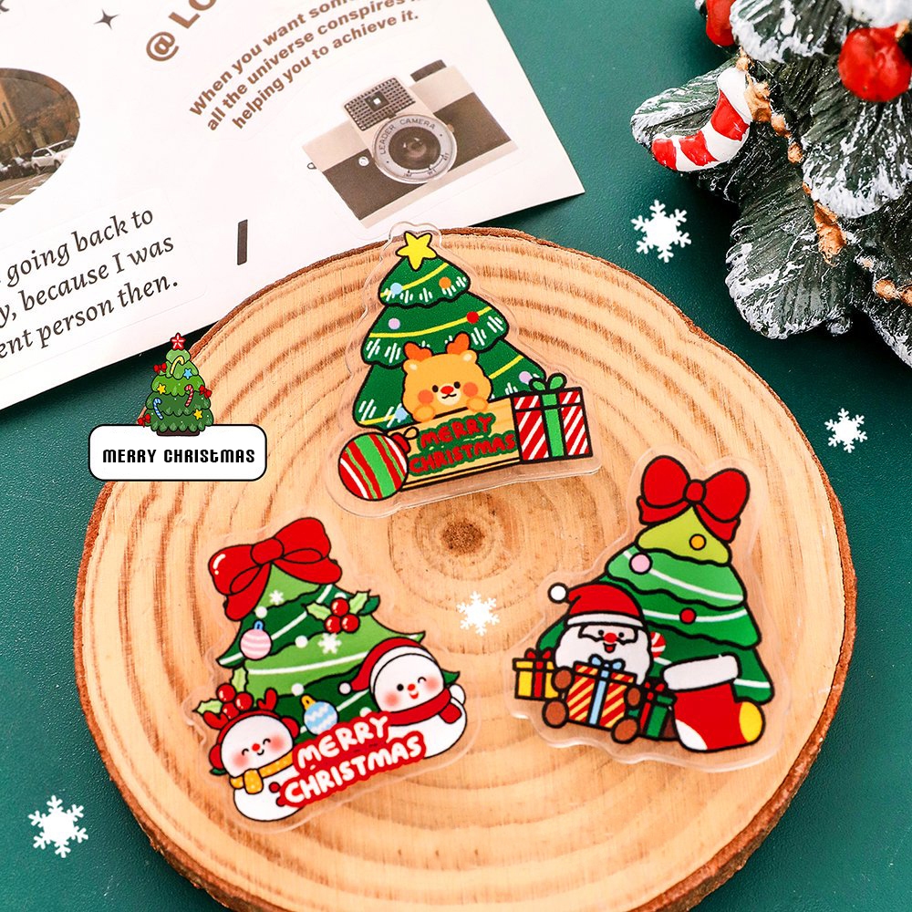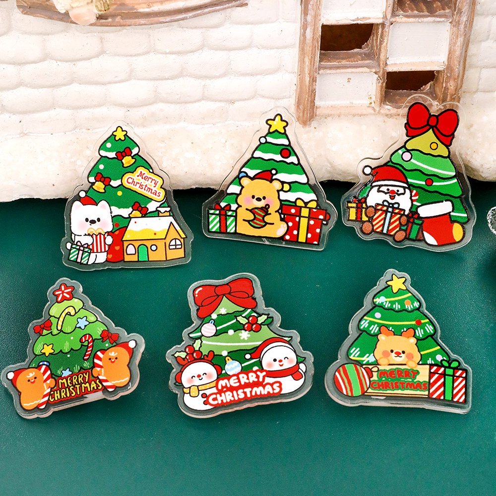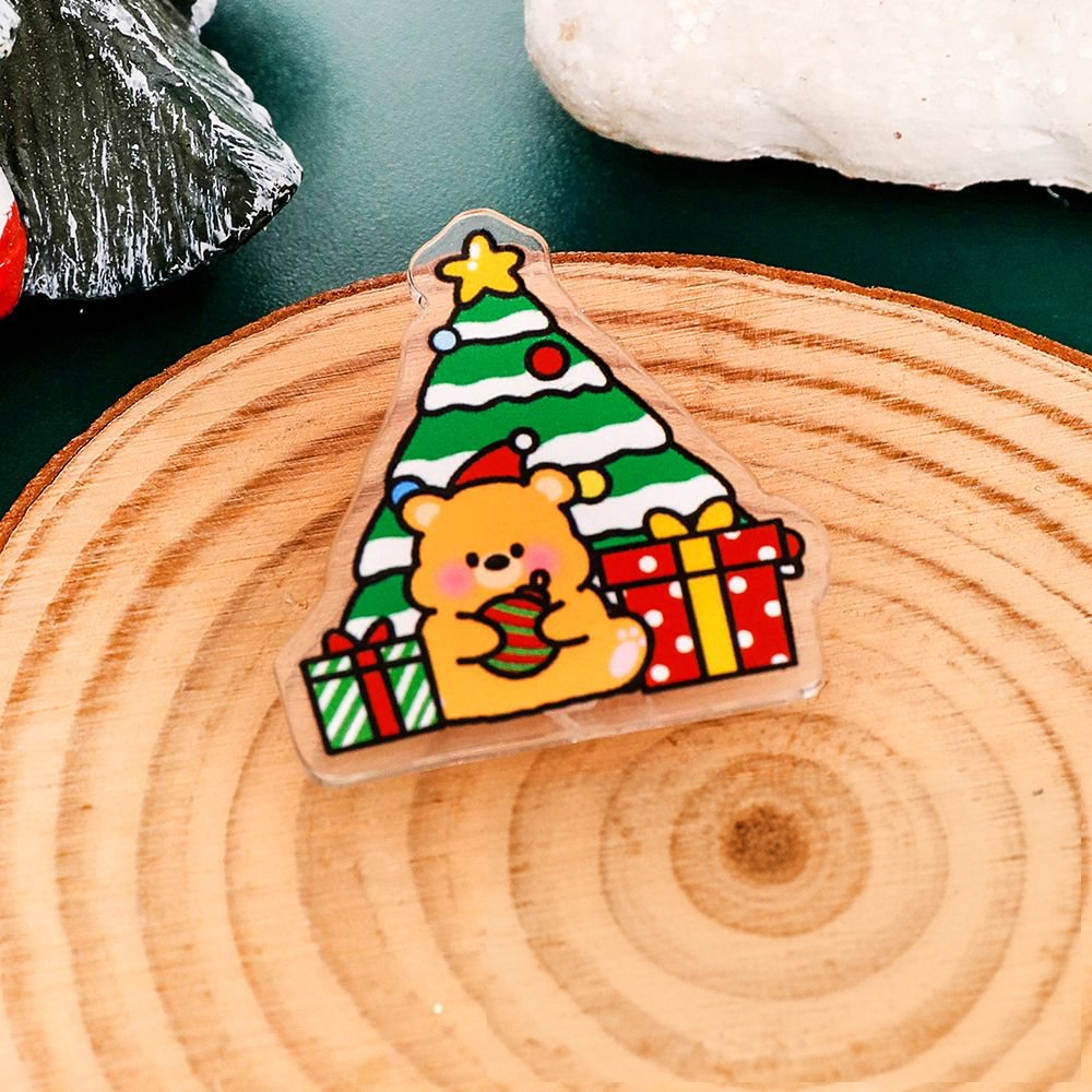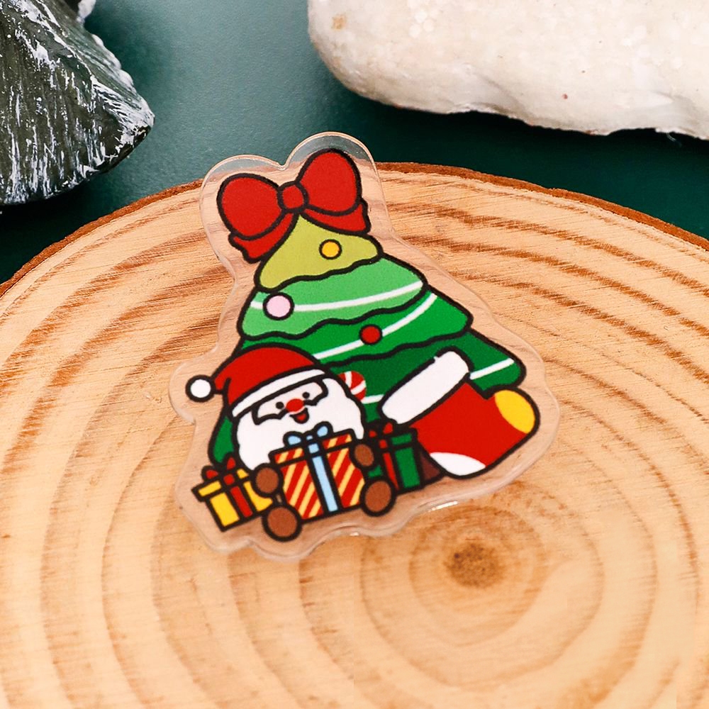 พร้อมส่ง🇹🇭 เข็มกลัดอะคริลิคใส ติดกระเป๋า ลายต้นคริสต์มาสและกล่องของขวัญ ของขวัญของตกแต่งน่ารัก