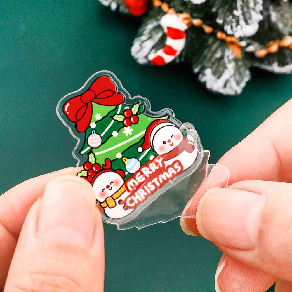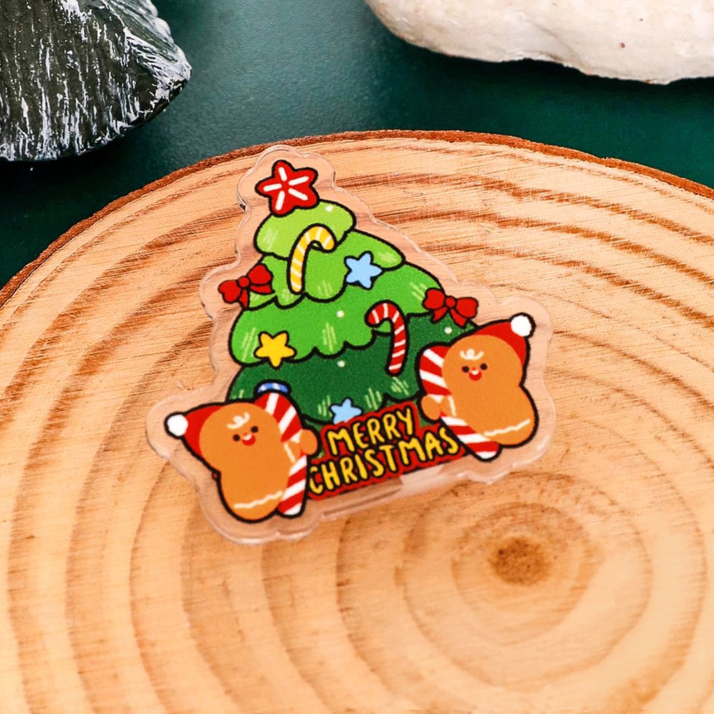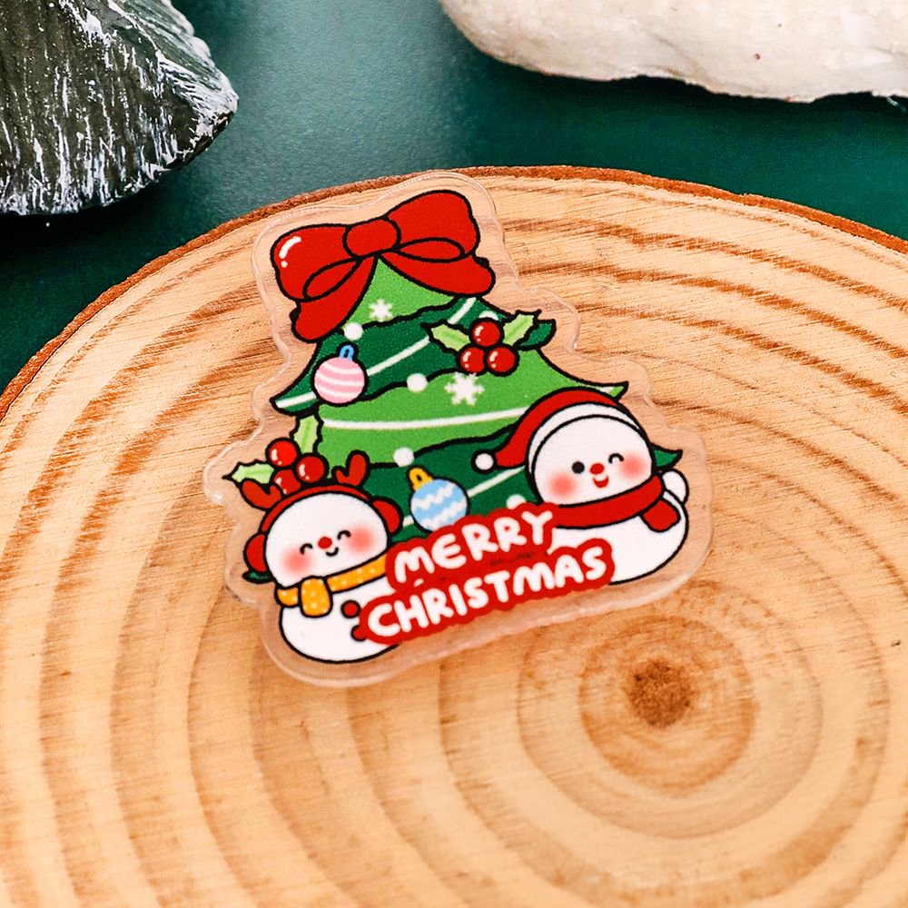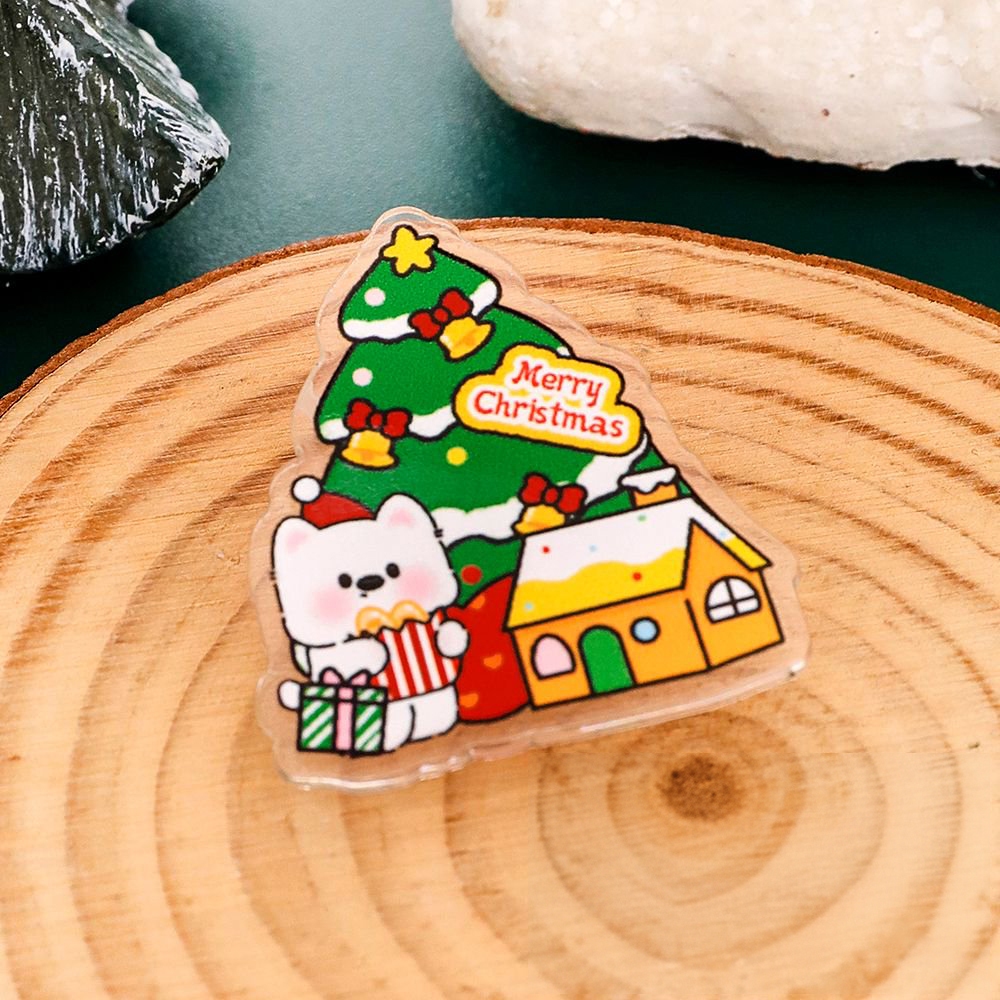 พร้อมส่ง🇹🇭 เข็มกลัดอะคริลิคใส ติดกระเป๋า ลายต้นคริสต์มาสและกล่องของขวัญ ของขวัญของตกแต่งน่ารัก